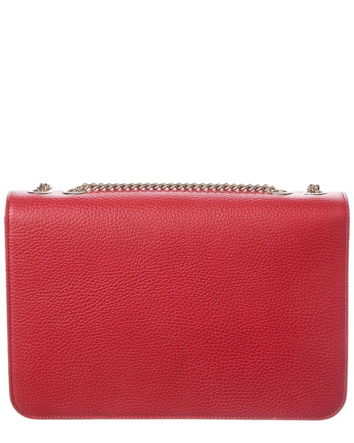 • Elevate your style with the Gucci Interlocking G Leather Shoulder Bag. This luxurious handbag is a statement piece that exudes Italian luxury redefined. Made in Italy, this shoulder bag features red leather and light fine gold hardware with the iconic interlocking G logo. The interior is designed with a canvas lining and zippered pocket for easy organization. Measuring 11 inches wide, 7.5 inches high, and 3 inches deep, this shoulder bag is the perfect size for all your essentials. The shoulder strap drops 23 inches, making it comfortable to wear all day. The fold-over flap with turnlock closure adds a touch of sophistication to any outfit.Please note that all measurements were taken by hand and are approximate, so slight variations may occur. Rest assured, our products are 100% genuine. We source our merchandise from trusted independent suppliers to ensure authenticity. Add this Gucci shoulder bag to your collection for a timeless piece that will elevate any look.