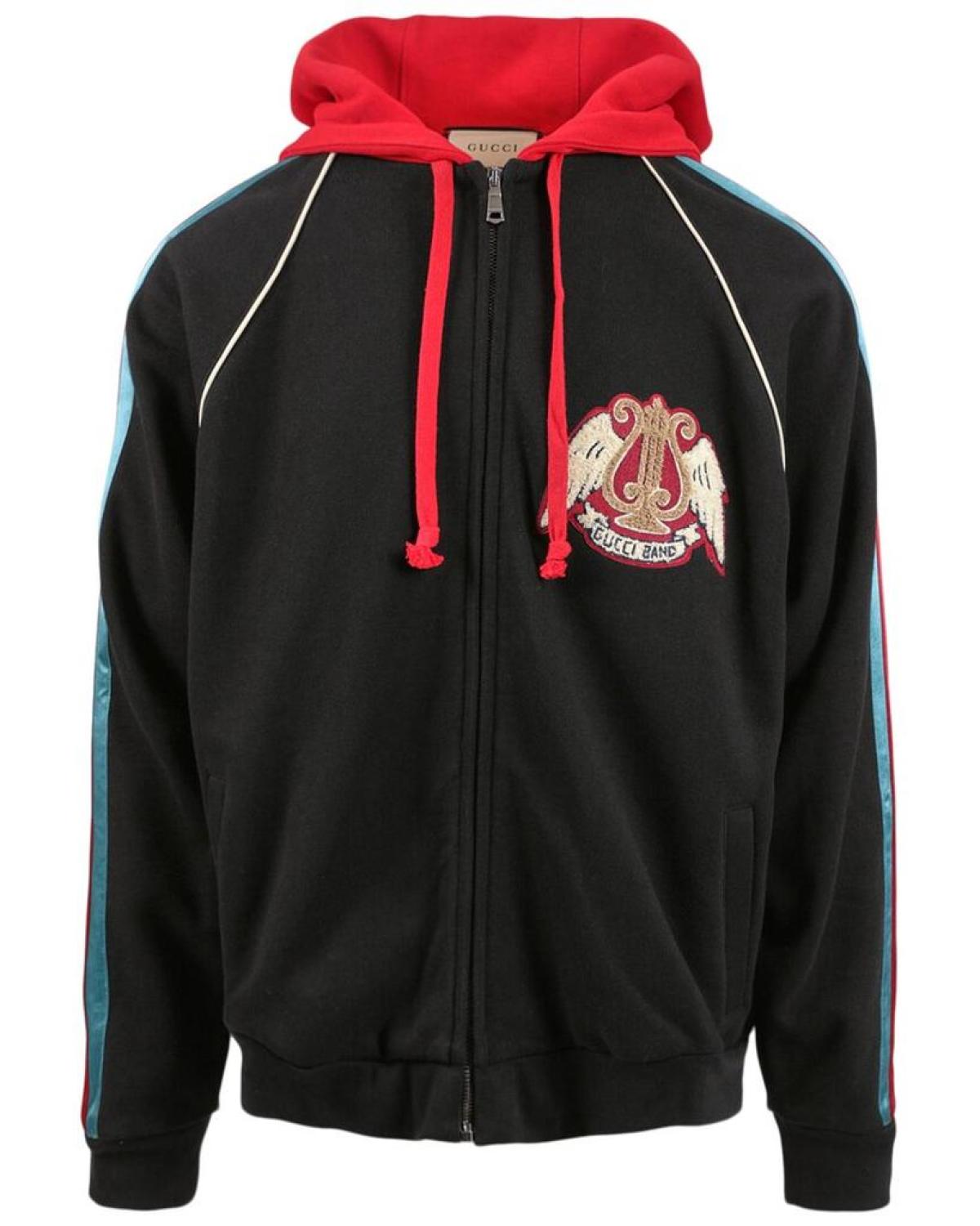 Introducing the Gucci Jacket, a must-have addition to any stylish man's wardrobe. This Italian luxury brand is renowned for its eclectic and coveted designs, redefining the concept of luxury. Crafted in black and red, this Gucci Jacket measures approximately 25.5 inches from shoulder to hem, ensuring a comfortable and trendy fit. The design details include a drawstring hood, side strip detailing, and a front logo patch, enhancing its contemporary appeal.Constructed with a blend of 96% cotton and 4% spandex, this jacket offers ultimate comfort and flexibility. To maintain its pristine quality, it is recommended to dry clean only. Proudly made in Italy, this Gucci Jacket exemplifies the brand's commitment to exquisite craftsmanship and meticulous attention to detail.Rest assured, all our products are 100% genuine. While some items may be sourced from trusted independent suppliers, we guarantee the authenticity of every product sold on our site. Elevate your style with this iconic Gucci Jacket and make a bold fashion statement.