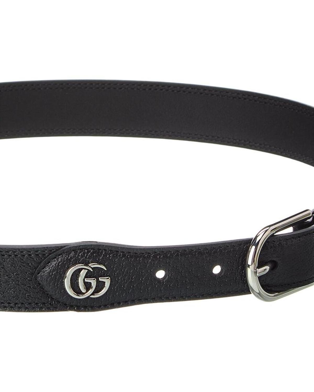 • Introducing the Gucci Leather Belt, a classic accessory for the modern man. Crafted with meticulous attention to detail, this belt exemplifies the iconic elegance that Gucci is renowned for. Elevate your style with the interlocking G logo accent and dark silver hardware that adorn this belt. The pin buckle closure adds a touch of sophistication, making it the perfect finishing touch to any outfit. Made in Italy, this black leather belt is a testament to Italian craftsmanship and luxury. The 1-inch width adds a sleek and stylish element to your ensemble, while the sizing in centimeters ensures a perfect fit. Be sure to refer to the size chart for US conversions.Please note that all measurements were taken by hand and are approximate. Slight variations may occur, adding a unique touch to each individual piece. Rest assured, all our products are 100% genuine. Although in some cases we source merchandise from trusted independent suppliers, we always stand by the authenticity of every product sold on our site. Experience the allure of Gucci's eclectic and coveted brand by owning this Gucci Leather Belt. Redefine your style and indulge in the unparalleled luxury that Gucci has to offer.