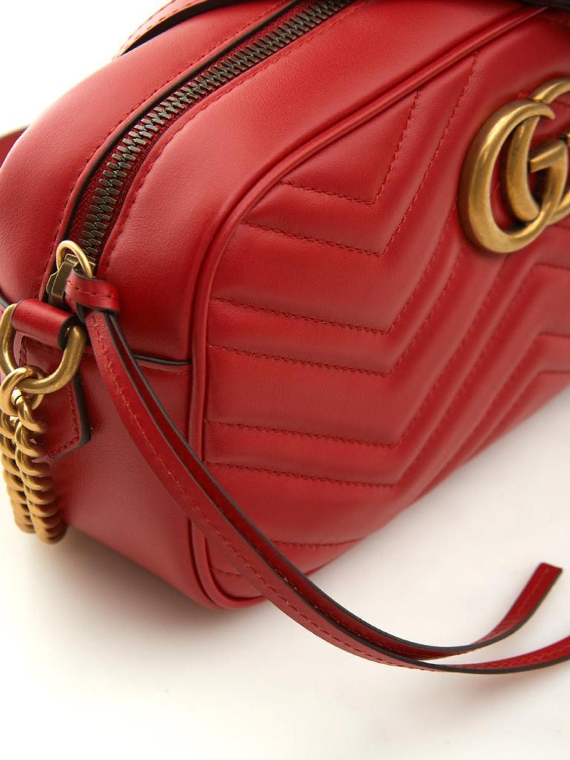 Gorgeous brand new with tags, 100% Authentic Dolce & Gabbana. Red Leather Marmont Shoulder Bag, matelassé, chevron details allover, closure with zip on upper side , gold metallic hardware, adjustable chain and leather strap, gold Gucci GG logo attached on front, lined.Model - BagColour - RedFitting - Regular fitMade in ItalyMaterial - 100% Leather