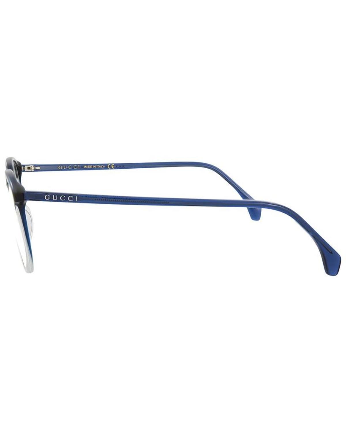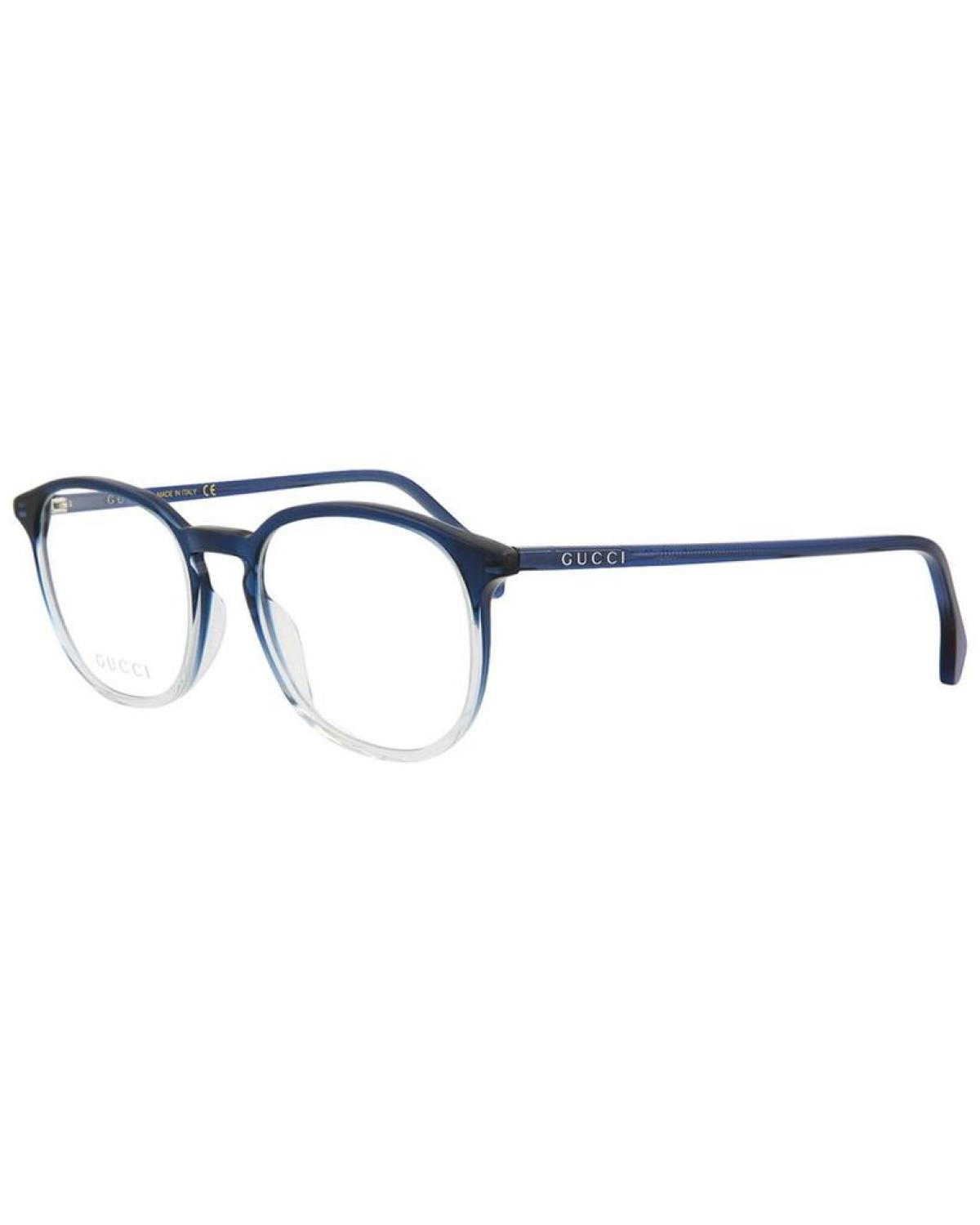 Introducing the Gucci Men's GG0551O 52mm Optical Frames - the impeccably crafted eyewear accessory that combines style and functionality. The frames boast a sophisticated blue transparent color and an eye-catching round/oval shape that flatters those with an oval, diamond, square, triangle, or oblong-shaped face. These frames come with a demo lens, but can easily be fitted with your prescription lenses by an optician. Our products are 100% genuine, and we stand behind the authenticity of every product sold on our site. With a bridge width of 19mm and arm length of 145mm, these frames provide a comfortable fit to ensure an optimal viewing experience. Made in Italy, the Gucci Men's GG0551O 52mm Optical Frames are a testament to the brand's eclectic and coveted Italian luxury. Shop with confidence and make a statement this Father's Day with these stunning optical frames. Order now and enjoy the impeccable quality of Gucci's eyewear collection.