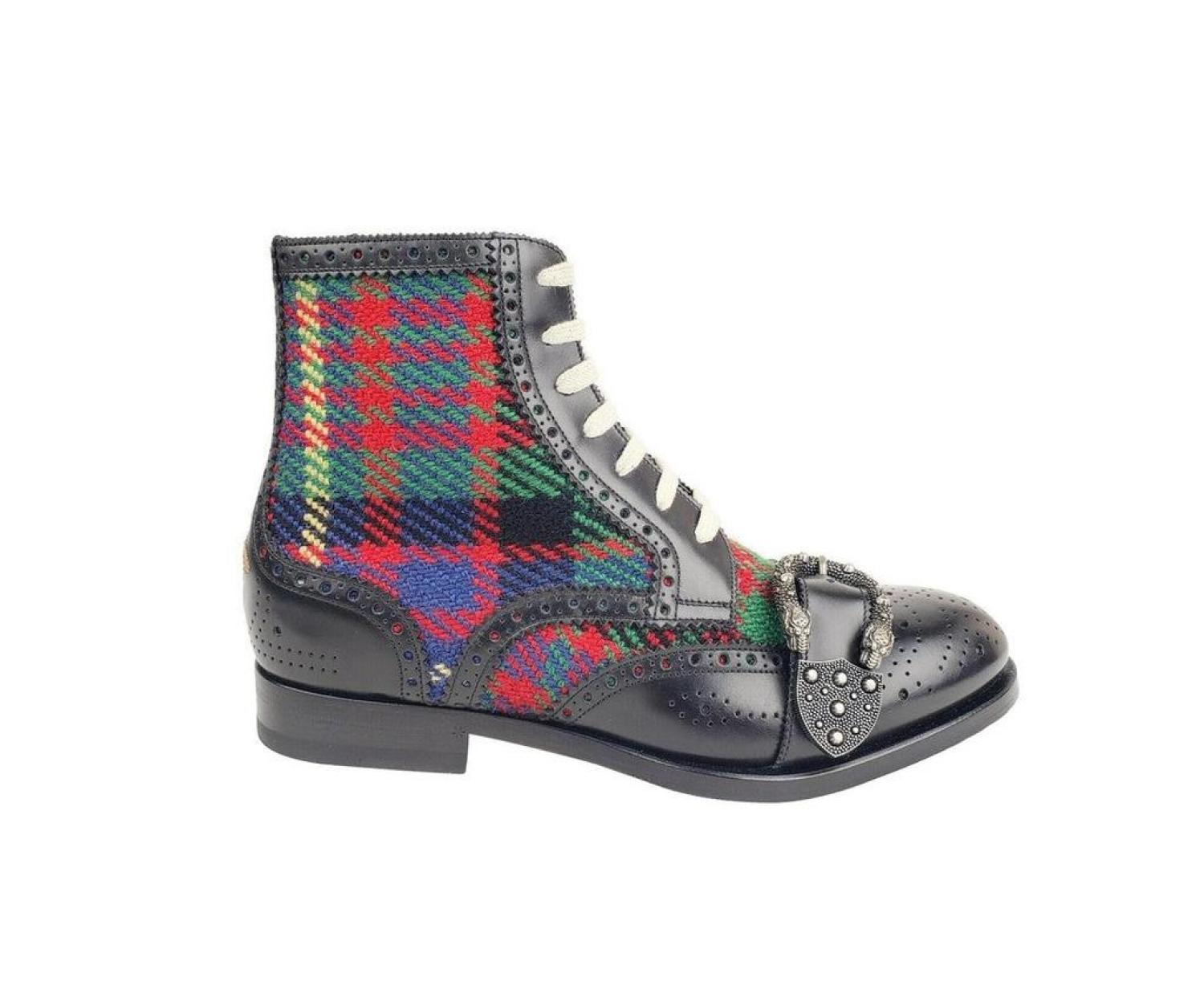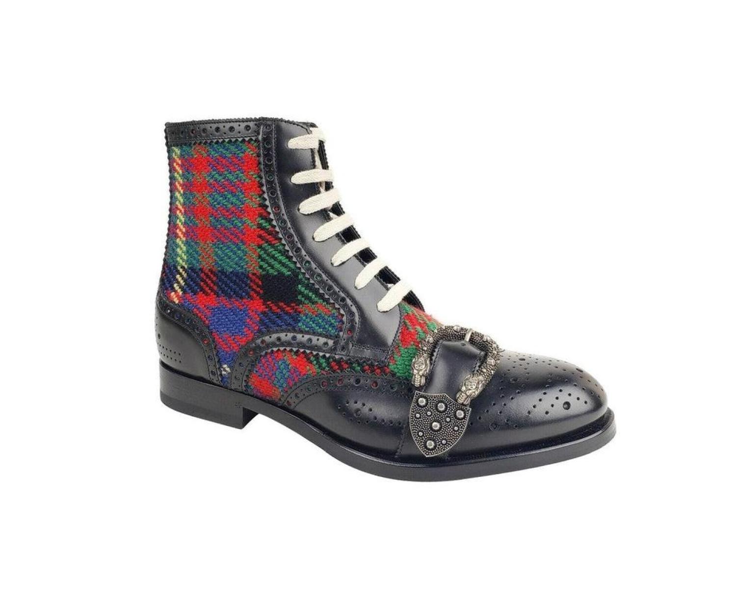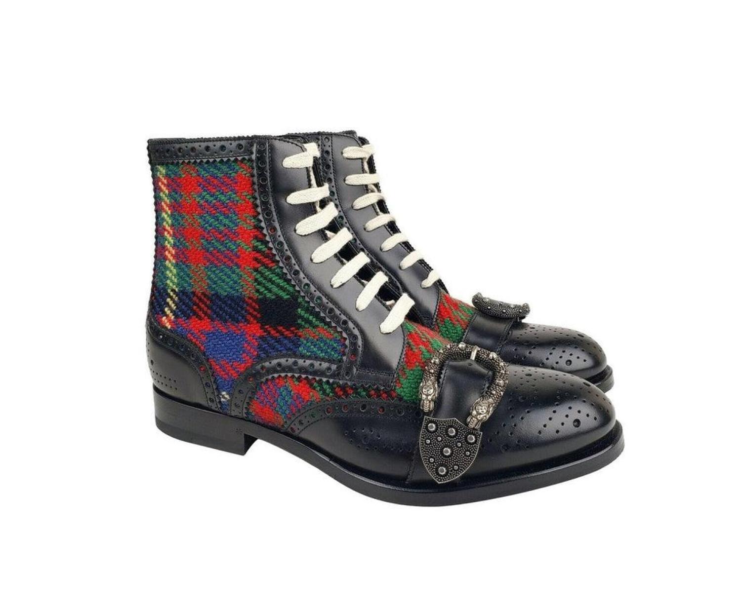 Gucci Men's Leather Checke Wool Boots (EU / US)