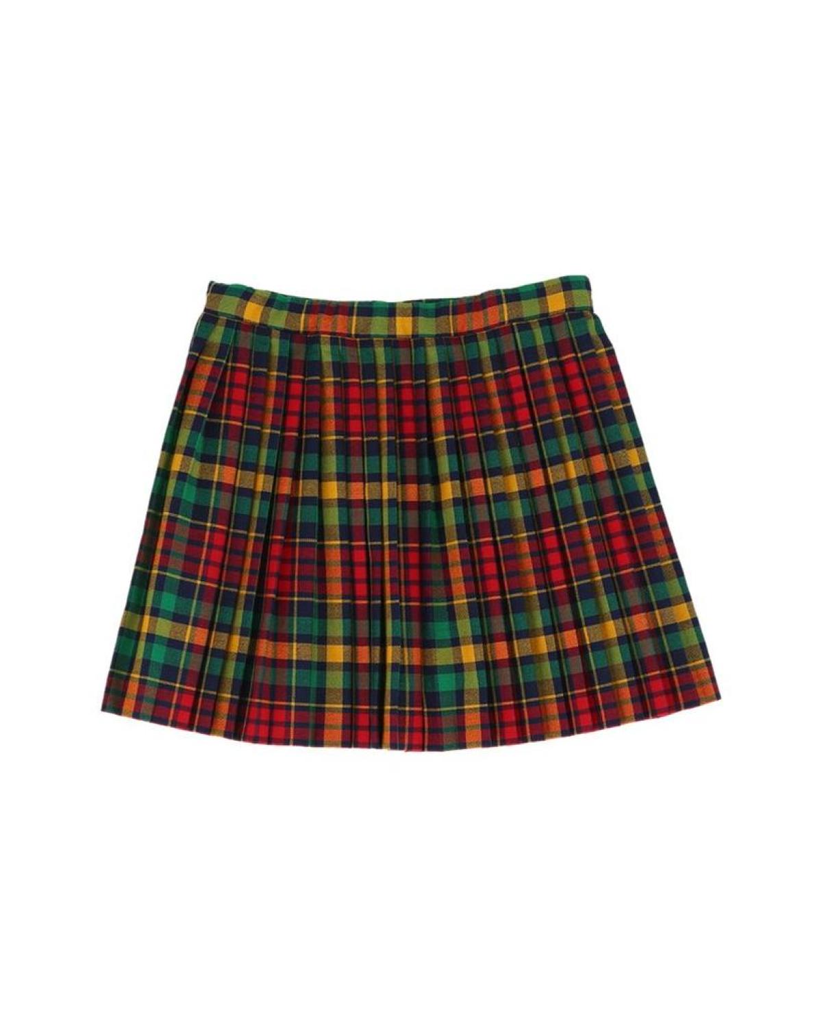 • Introducing the Gucci Pleated Plaid Wool Skirt – a perfect addition to your little girl's wardrobe. Crafted with exquisite attention to detail, this skirt showcases the iconic Italian luxury brand, Gucci. The brand's reputation for being eclectic and highly coveted is reflected in this stylish piece. Made in Italy, this skirt is meticulously constructed using 100% wool, ensuring both comfort and durability. The pleated plaid design in crab red and multicolor adds a playful touch to the classic silhouette. Featuring a convenient zip-up closure, this skirt is easy to put on and take off. It is recommended to dry clean only to maintain its impeccable quality.Rest assured that you are purchasing an authentic Gucci product. While we occasionally source merchandise from trusted independent suppliers, we always guarantee the authenticity of every product sold on our site. Make your little girl's outfit stand out with the Gucci Pleated Plaid Wool Skirt. Order now and experience the timeless luxury that Gucci brings to the world of kids' fashion.