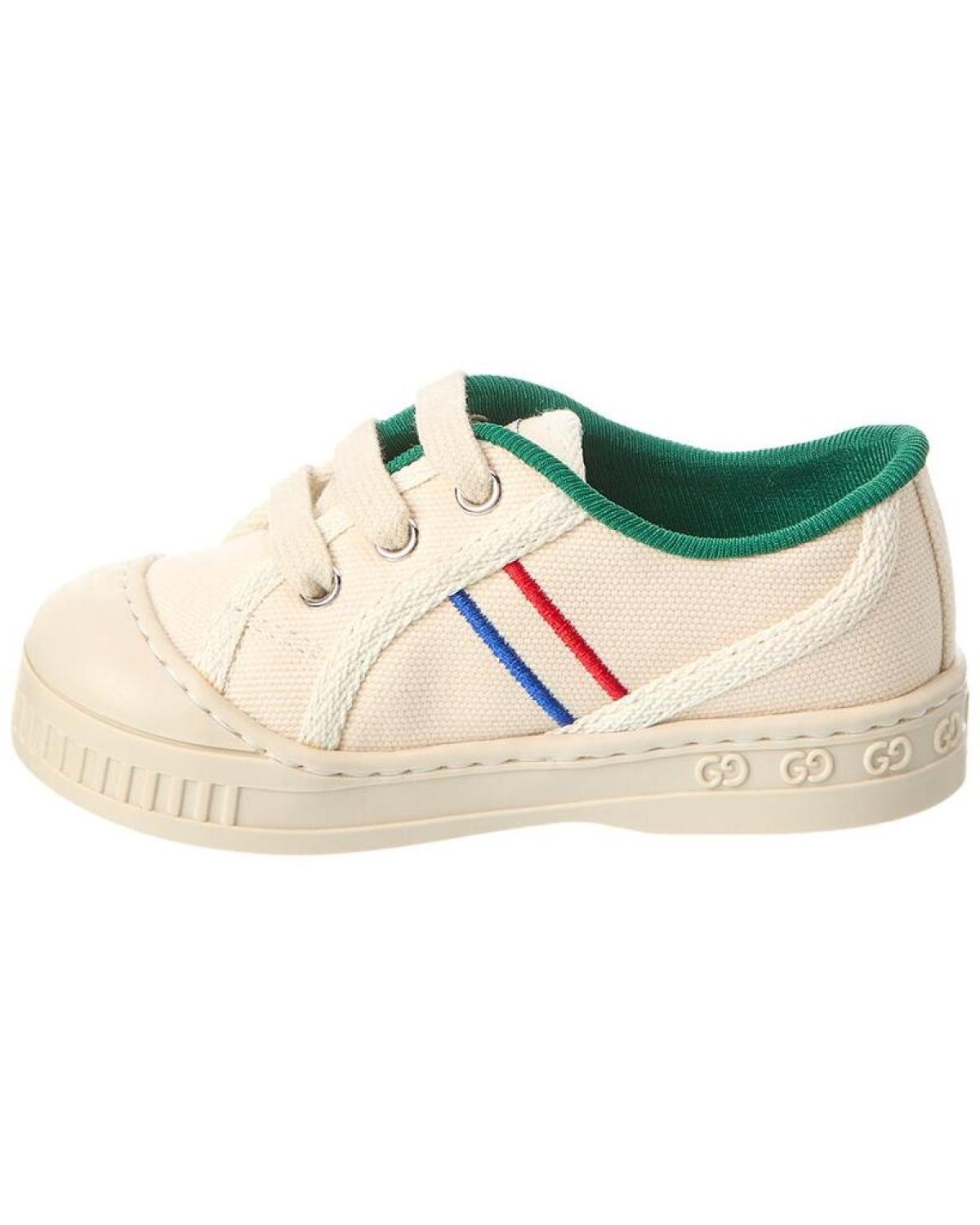 Elevate your little one's casual style with the Gucci Tennis 1977 Canvas Sneaker. Made in Italy, these stylish sneakers feature ivory canvas with dark silver hardware, logo embroidery, and grosgrain trim. The lace-up closure and lightly padded leather insole provide comfort, while the rubber sole with traction ensures stability. With the eclectic and coveted Gucci brand behind them, these sneakers are a must-have for any fashion-forward kid. Please note that size selections are European, so be sure to reference the size chart for US conversions. Rest assured, our products are 100% genuine, sourced from trusted independent suppliers.