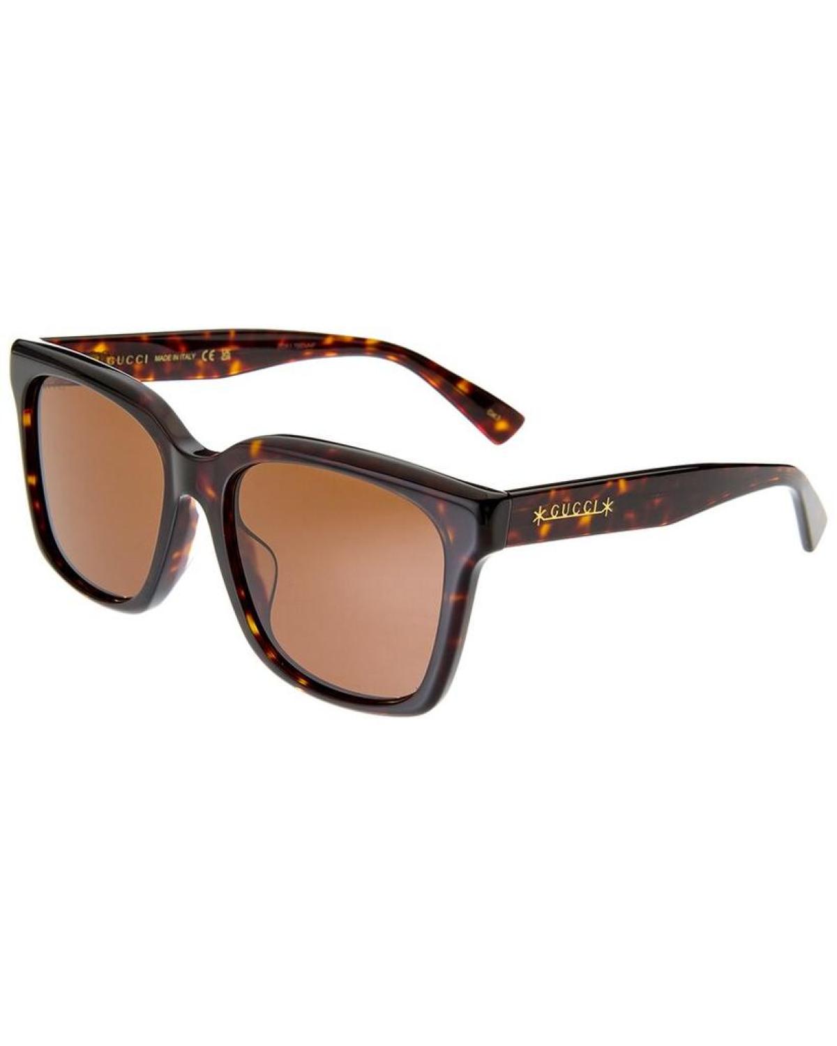 • Introducing the Gucci Unisex GG1175SK 56mm Sunglasses, the ultimate accessory for those who want to exude fashion-forward style. As a renowned brand in the fashion industry, Gucci is known for its luxurious and eclectic designs that redefine Italian luxury.These sunglasses feature a square-shaped frame in Havana color that complements various facial shapes, including oval, round, diamond, triangle, or oblong. The brown plastic lenses provide 100% UV protection to keep your eyes safe from harmful sun rays.Complete with the Gucci logo on the temple, these sunglasses are sure to turn heads wherever you go. With a lens width of 56mm, bridge width of 18mm, and arm length of 145mm, these sunglasses offer a comfortable and secure fit.The model number for these sunglasses is GG1175SK. At our store, we ensure that every product we sell, including this pair of Gucci sunglasses, is 100% genuine. While we occasionally purchase merchandise from trusted independent suppliers, we always stand by the authenticity of every item sold on our site.Add a touch of luxury and sophistication to your wardrobe with these Gucci Unisex GG1175SK 56mm Sunglasses. Shop now and elevate your fashion game!