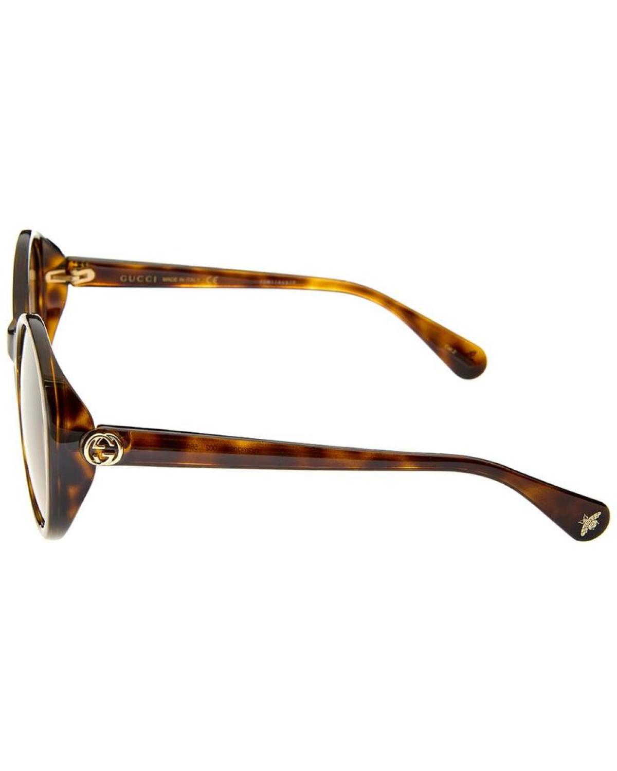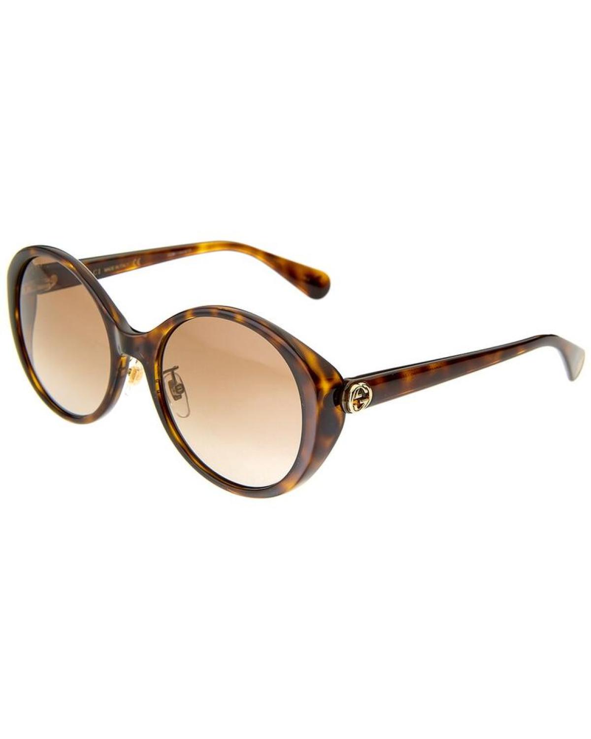 Introducing the Gucci Women's GG0370SK 56mm Sunglasses, a timeless accessory that adds a touch of luxury to any outfit. With a round/oval frame shape and a rich Havana brown color, these sunglasses exude elegance and sophistication. The brown lenses provide excellent protection from the sun while maintaining a stylish look. Designed with attention to detail, these sunglasses feature a 56mm wide lens and a 19mm wide bridge, ensuring a comfortable fit for prolonged wear. The arms measure 145mm long, completing the chic design. Crafted in Italy, these sunglasses showcase Gucci's commitment to exquisite craftsmanship and Italian luxury. The brand's eclectic and coveted reputation is truly redefined in this accessory. Rest assured, all our products, including these Gucci sunglasses, are 100% genuine. While we sometimes source merchandise from trusted independent suppliers instead of directly from the brand owner, we guarantee the authenticity of every product sold on our site. Elevate your style with the Gucci Women's GG0370SK 56mm Sunglasses – a stunning blend of fashion and functionality.