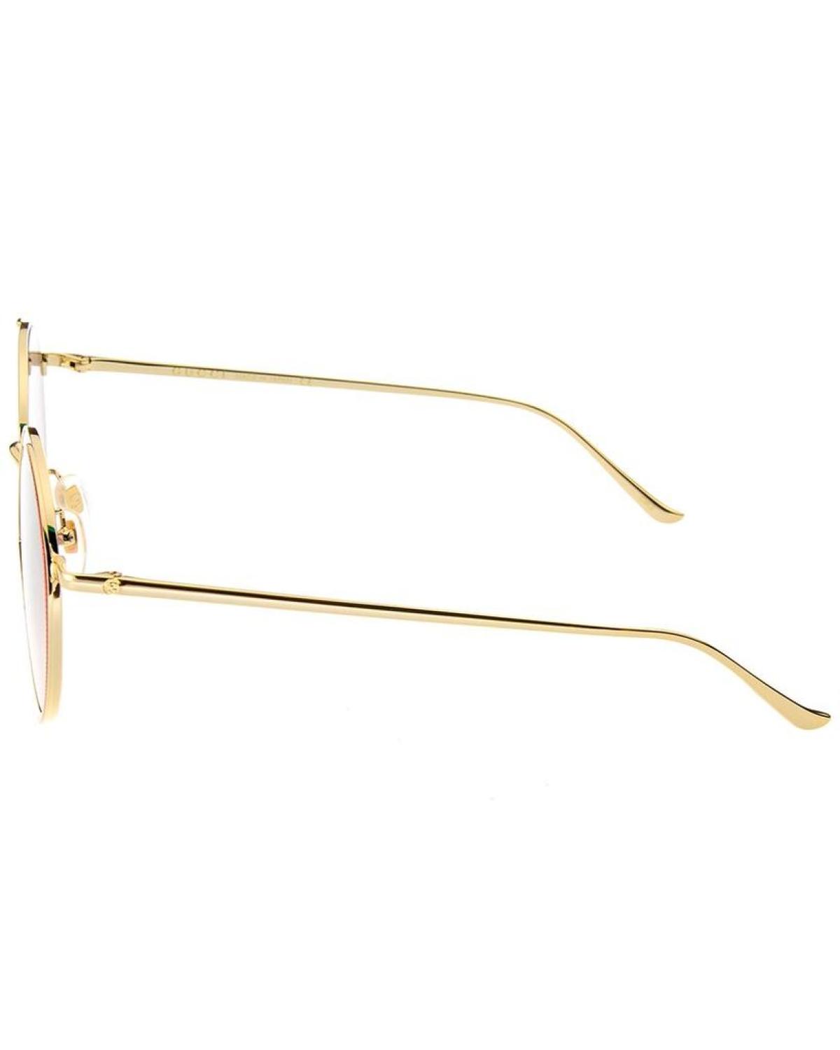 Introducing the Gucci Women's GG0401SK 56mm Sunglasses, the perfect accessory for any fashion-forward woman. This Italian luxury brand has redefined the fashion world with its eclectic and coveted pieces. The round/oval frame shape in gold multicolor and multicolor lenses make for a striking and unique fashion statement. These frames flatter those with an oval, diamond, square, triangle or oblong shaped face. The lenses are 56mm wide, the bridge is 18mm wide, and the arms are 145mm long. The model number for these sunglasses is GG0401SK-30006071004. Our products are 100% genuine, and in some cases, we purchase merchandise from trusted independent suppliers and not directly from the brand owner. In all cases, we stand by the authenticity of every product sold on our site. Add some Italian luxury to your accessory collection with the Gucci Women's GG0401SK 56mm Sunglasses.