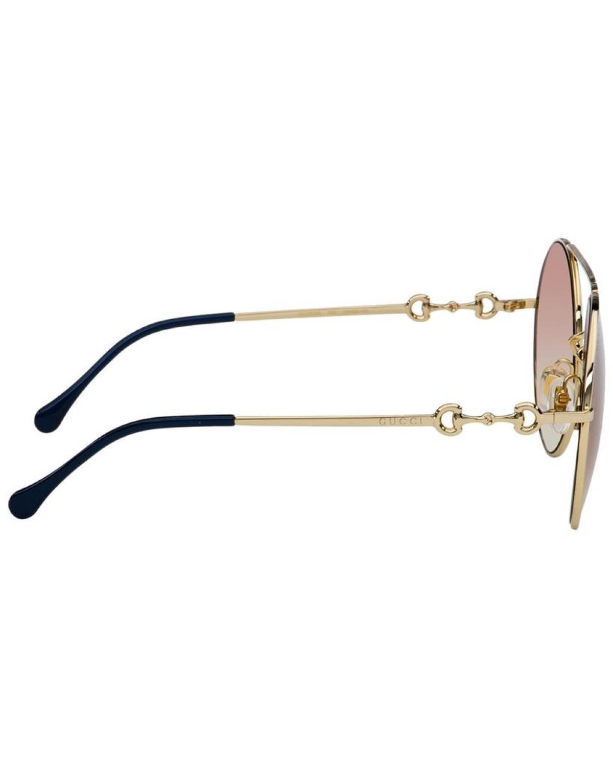 Introducing Gucci Women's GG0878S 59mm Sunglasses, the perfect accessory for the modern woman who wants to elevate her style. With the brand's signature Italian luxury redefined, these sunglasses are eclectic and coveted, offering a bold statement for any outfit. The round frame shape in gold and brown gradient lens color flatters those with an oval, diamond, square, triangle or oblong shaped face. These sunglasses feature plastic lenses with 100% UV protection, ensuring that your eyes stay safe while enjoying the summer sun. With a lens width of 59mm, bridge width of 20mm, and arm length of 140mm, these sunglasses offer a comfortable and custom fit. Made in Italy, these sunglasses are 100% genuine and represent the perfect blend of style and sophistication. So, if you want to make a statement, then these Gucci sunglasses are the perfect choice for you!