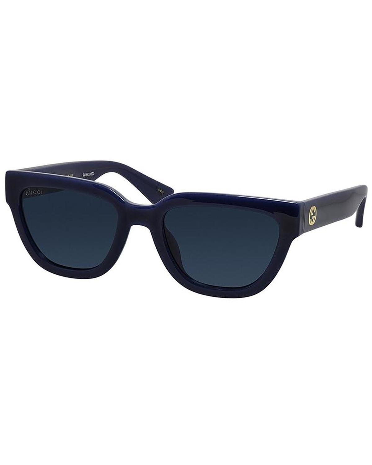Elevate your style with the Gucci Women's GG1578S 54mm Sunglasses. These luxury sunglasses from the iconic Italian brand Gucci are the perfect accessory to add a touch of sophistication to any outfit.The cat eye shape of the violet frames flatter a variety of face shapes, including oval, round, diamond, triangle, or oblong. The blue classic lenses are 54mm wide with a 20mm wide bridge and 140mm long arms. Each pair comes with a case, though the size and color may vary.These sunglasses are made in Italy and are 100% genuine, ensuring the highest quality and authenticity. Embrace the eclectic and coveted style of Gucci with the GG1578S sunglasses.