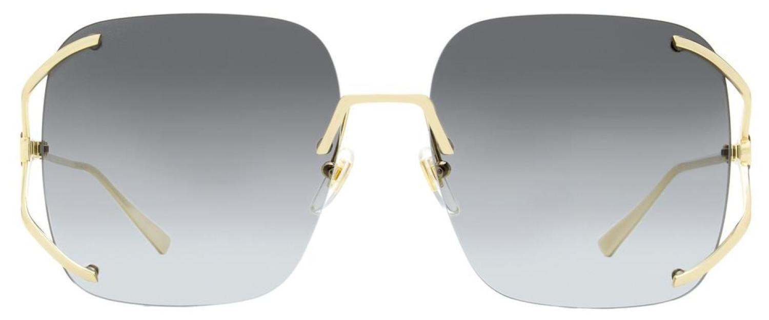 The Gucci GG 0646 Sunglasses feature a large rimless square shape for women. The made in Japan metal features Fork temples that are decorated with colored enamel and the interlocking GG logo. Crafted of the highest quality materials, Gucci's world renowned brand and bold designs have made their Sunglasses exceptionally desirable. Providing 100% UV protection from the suns harmful rays these sunglasses are functional in addition to being fashionable. Frame Material - Metal Frame Color - Gold Lens Color - Gray Gradient Size - 60-17-135 Made in Japan Includes original case and cloth