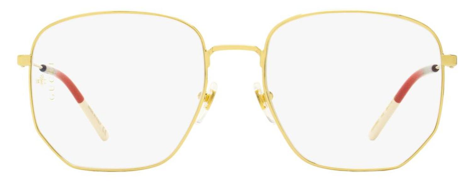 • The Gucci GG 0396 optical frames feature an octagonal lens shape and thin profile for women. The metal frame is contrasted with multi color temple tips and the famous interlocking GG logo on both temples. Crafted of the highest quality materials, Gucci's world renowned brand and bold designs have made their Eyeglasses exceptionally desirable. Please note these eyeglasses are provided with Demo Lenses in order to demonstrate the final appearance of your frames. Please visit your local Optometrist or Optician to replace with optical quality lenses. Frame Material - Metal/Plastic (Acetate) Frame Color - Gold/Sylvie Lens Color - N/A Size - 56-18-140 Made in Italy Includes original case and cloth