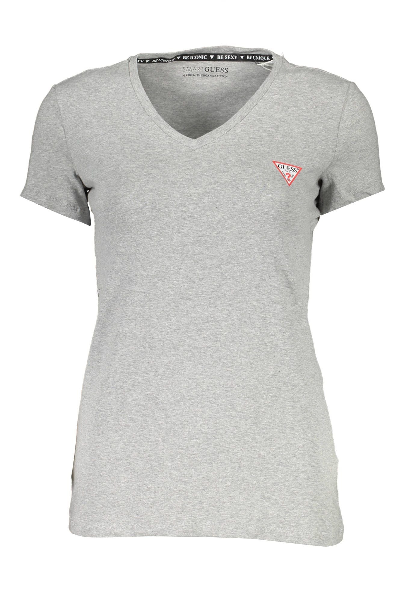 Elevate your everyday look with a touch of Guess Jeans chic! This sleek gray T-shirt exudes casual sophistication with its flattering “V” neckline and iconic Guess Jeans logo print. Crafted from a luxurious blend that’s soft to the touch, boasting 95% organic cotton and 5% spandex for the perfect stretch. Designed for the trendsetters, it’s not just a tee, it’s a statement.