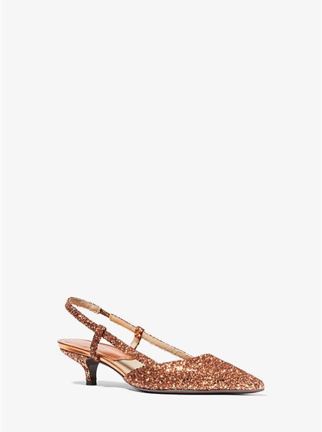 The Italian-made Hallie pumps offer a glamorous take on day-to-dark style. Featuring allover glitter, this sling-back pair is an elevated take on the kitten heel. Put them on display with cropped denim or wide-leg trousers. Sling-back pump Glitter 45% coated canvas/30% cotton/25% water based adhesive Lining: 100% leather Sole: leather Point toe Slip on Heel height: 1.5" Heel type: wrapped Made in Italy Sling-back pump Glitter 45% coated canvas/30% cotton/25% water based adhesive Lining: 100% leather Sole: leather Point toe Slip on Heel height: 1.5" Heel type: wrapped Made in Italy