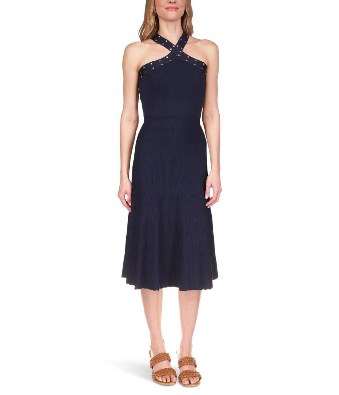 Add the slightest of edge to your look for any event in the MICHAEL Michael Kors® Halter Dress w/ Studs Trim.