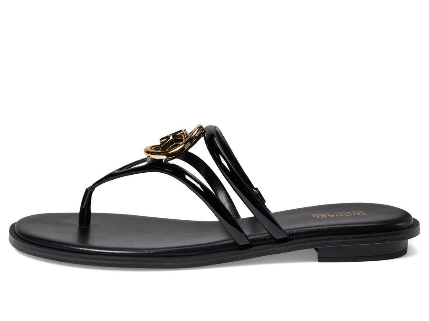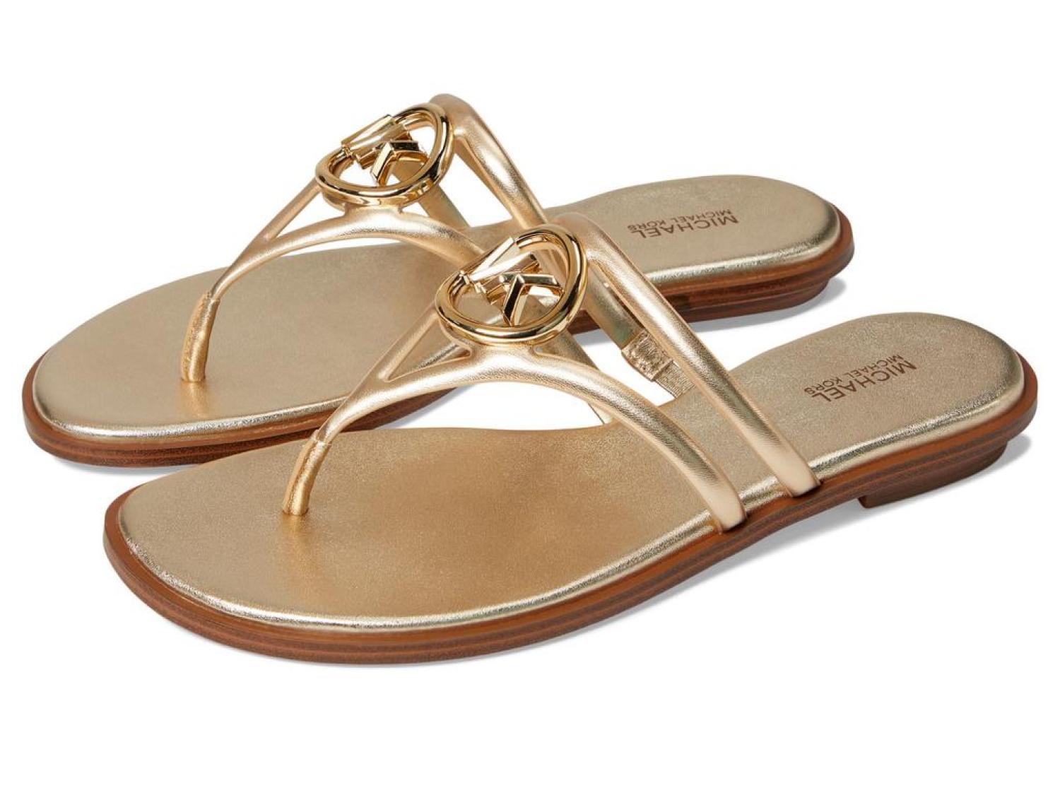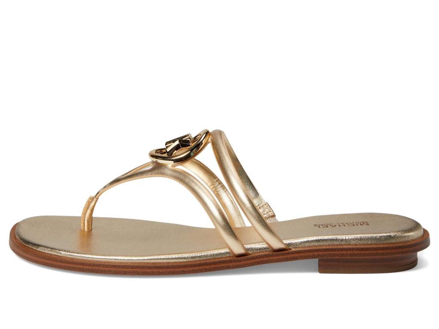 • From day to night, get an elegant look and enjoy premium cushioning and flexibility wearing the MICHAEL Michael Kors® Hampton Flat Sandals.