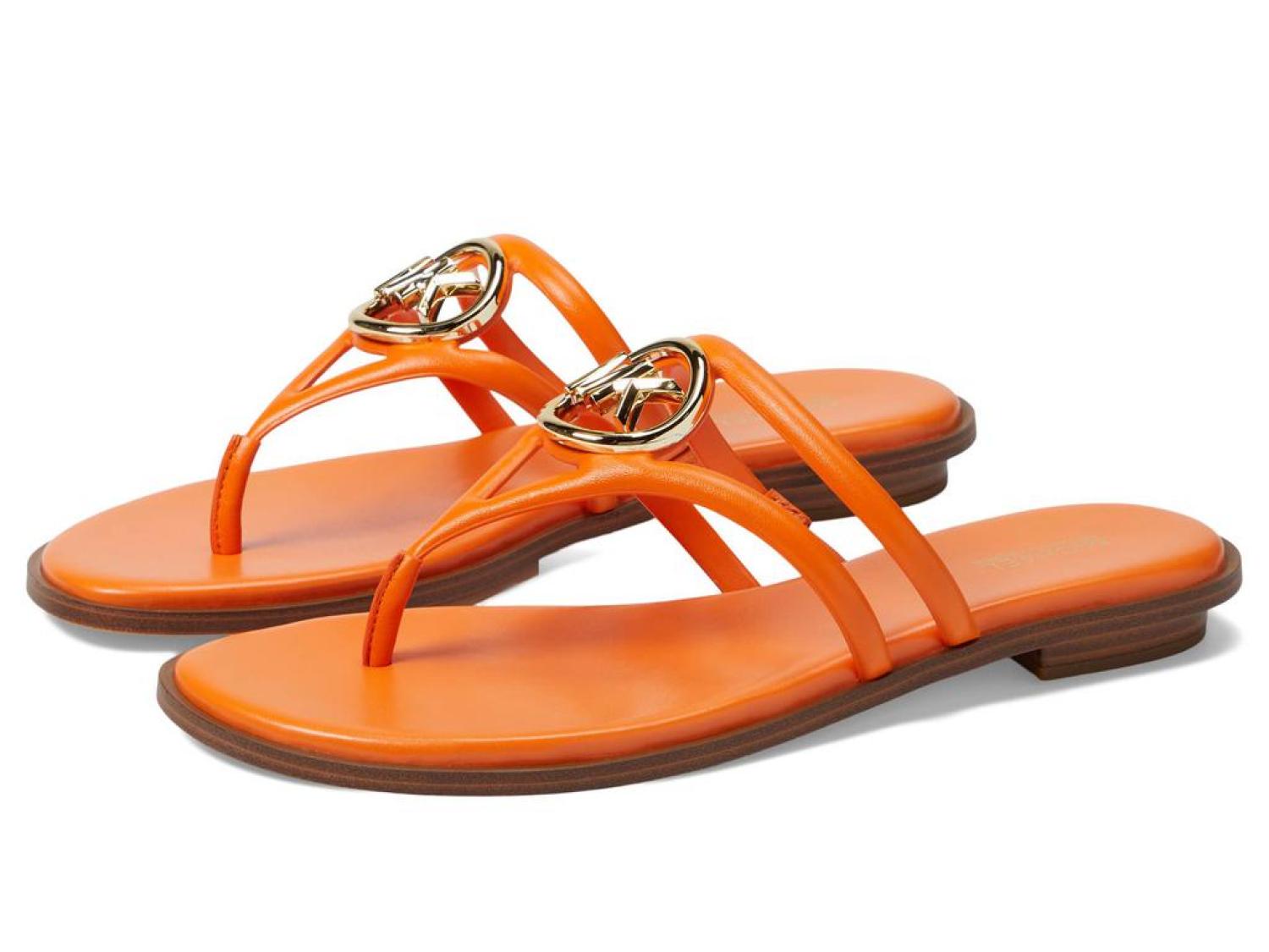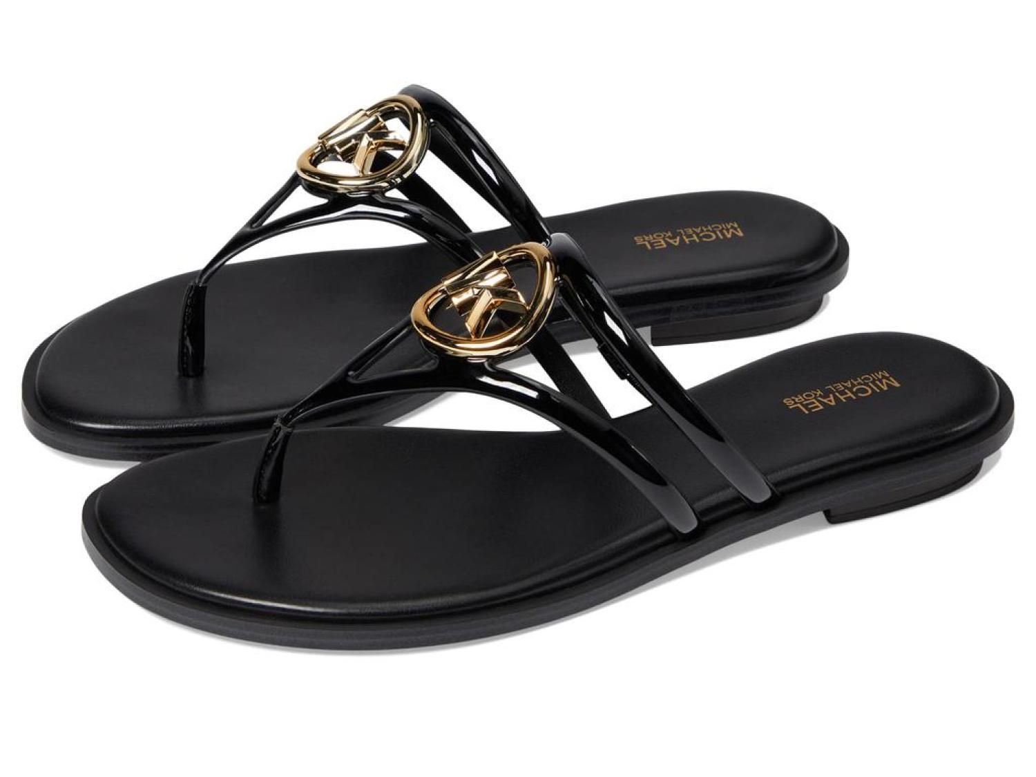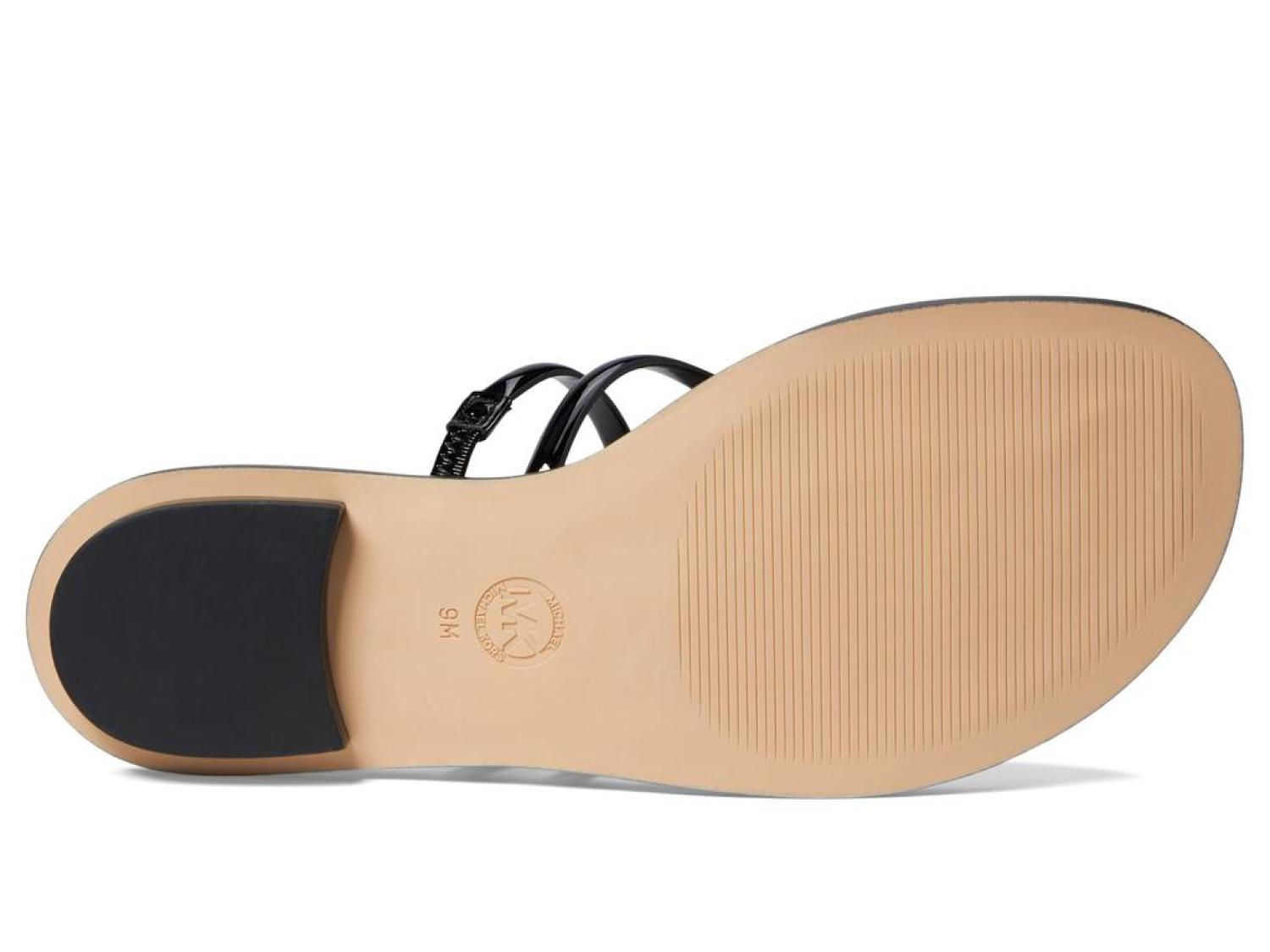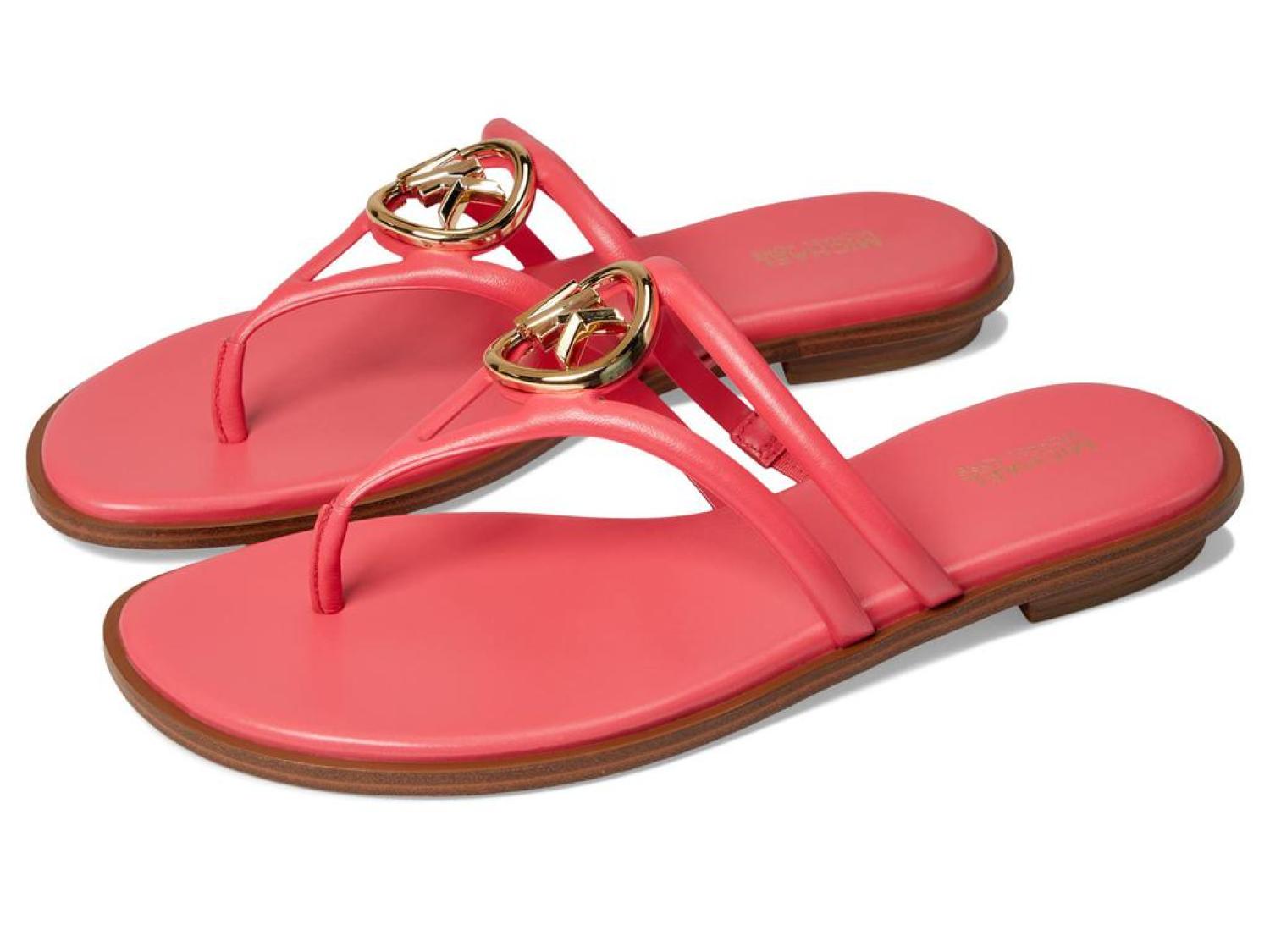 • From day to night, get an elegant look and enjoy premium cushioning and flexibility wearing the MICHAEL Michael Kors® Hampton Flat Sandals.