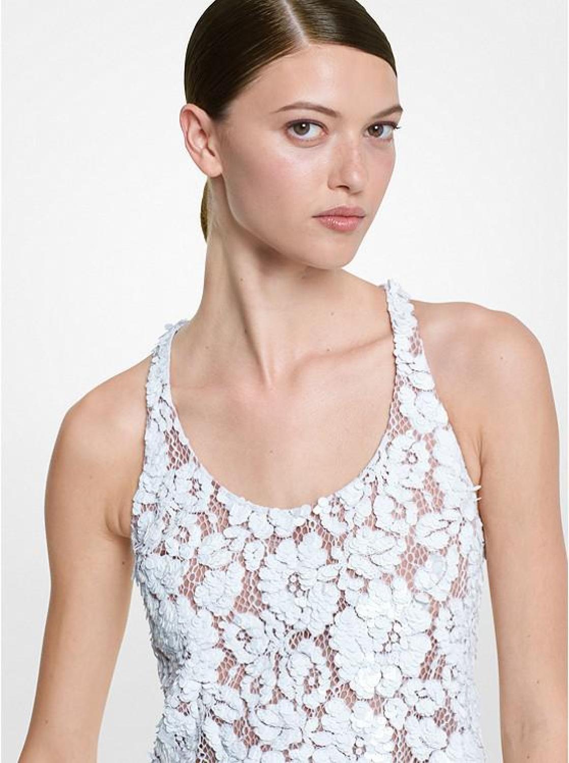 Hand-Embroidered Paillette Floral Lace Shift Dress