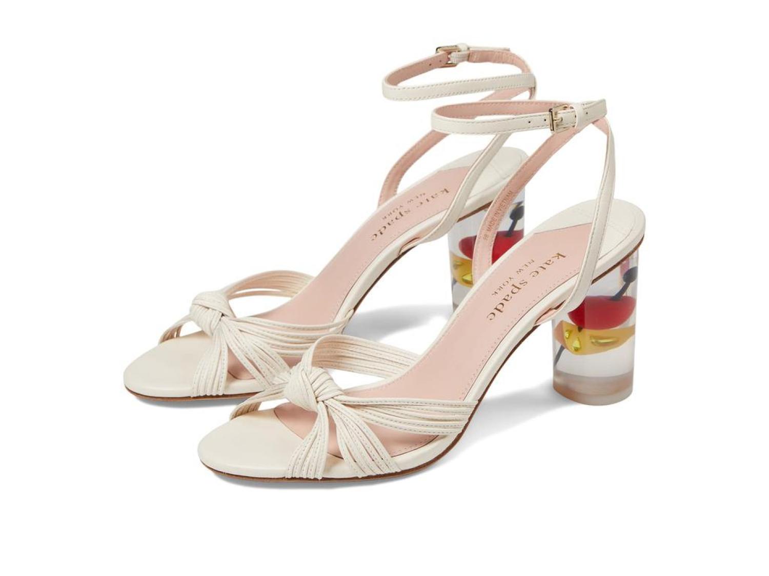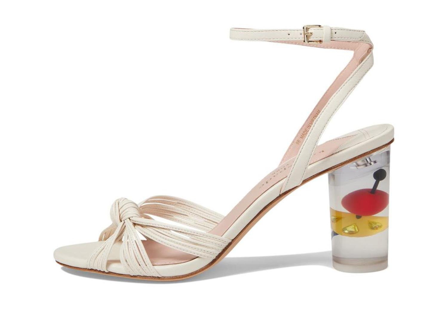 Go from day to night with the Kate Spade New York® Happy Hour strappy sandals featuring a knotted detail across the toes and a unique clear heel displaying a lemon and cherry cocktail topper.