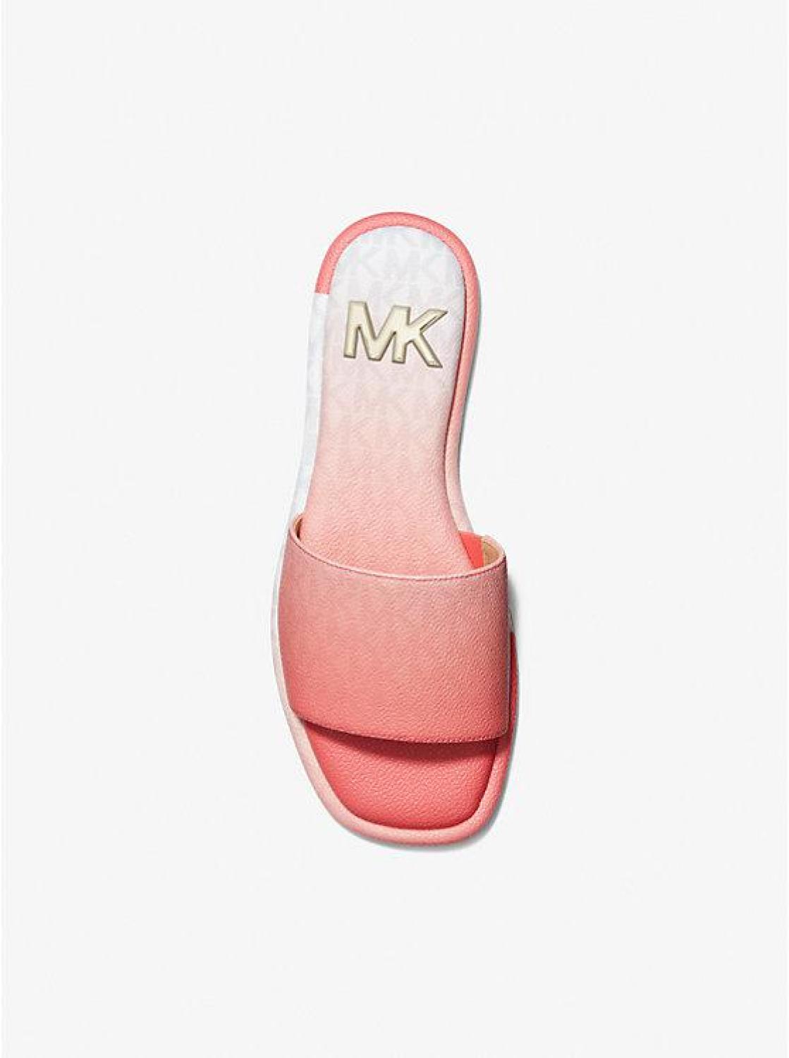 Our Hayworth slide sandals are an effortless choice for warm-weather days. They’re crafted from Signature-print canvas with an ombré finish for a cool, sun-washed effect. Style them with a breezy boho top and shorts when hanging out by the pool.