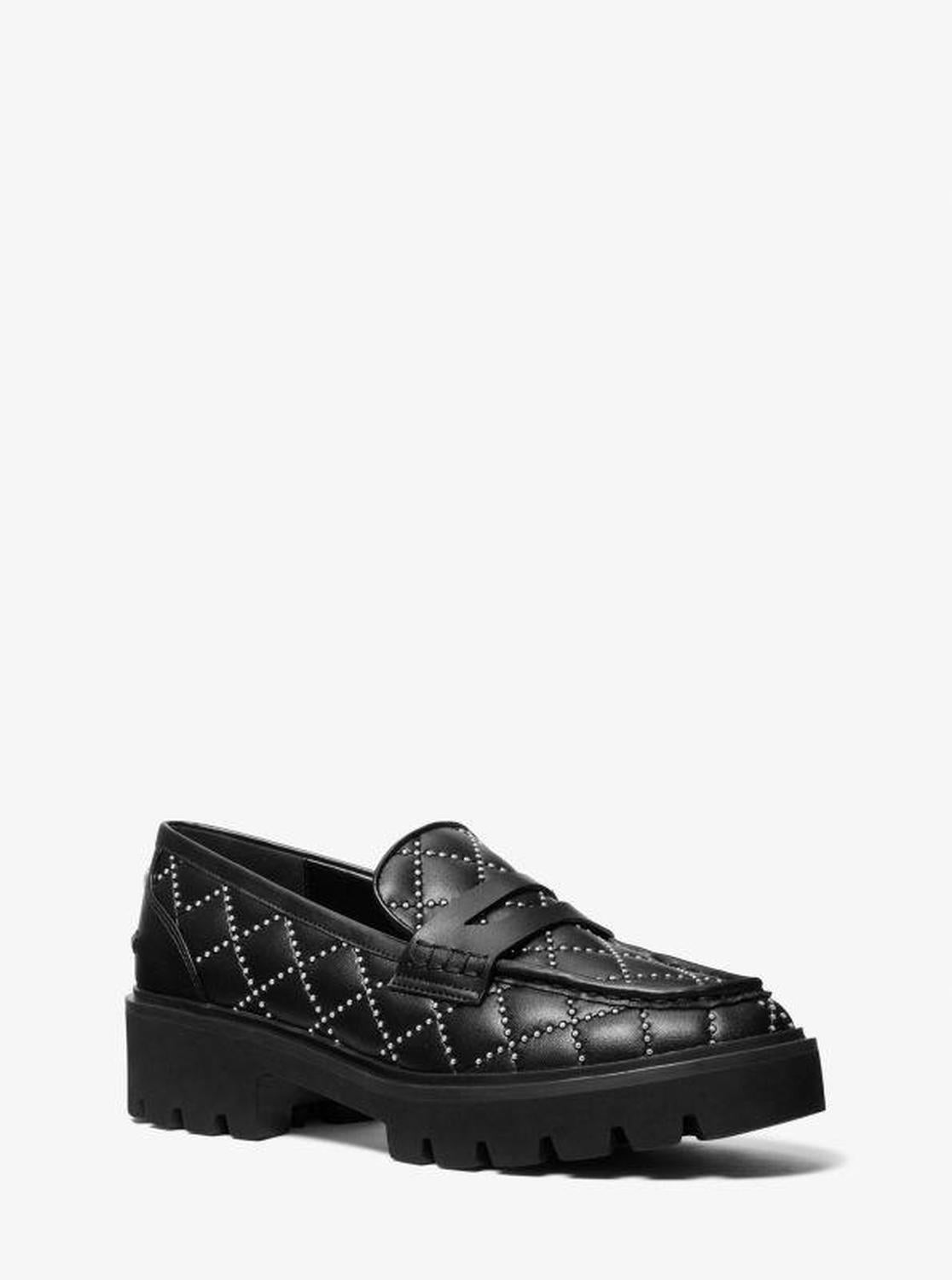 • Timeless with a twist, the Holland is designed in a penny loafer silhouette and set on a chunky lug sole for utilitarian edge. This style features understated quilting outlined by micro studs for a touch of shine. We think they look equally chic alongside denim, dresses and tailored trousers.