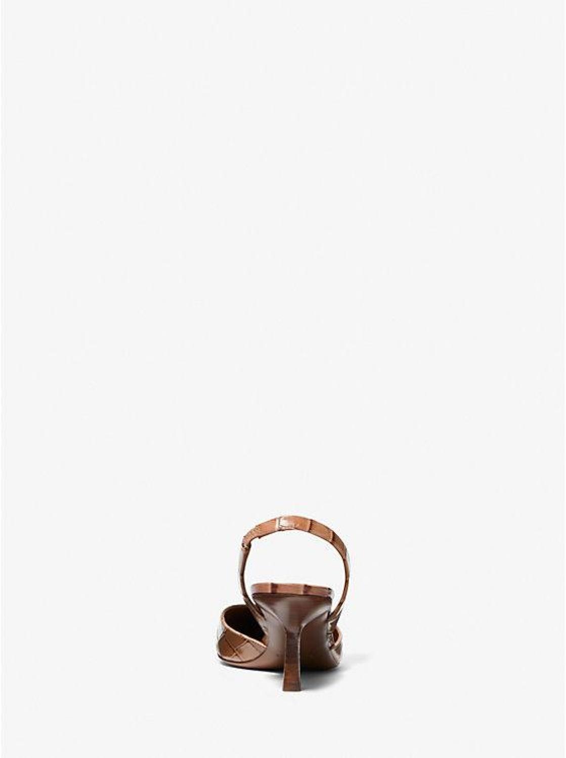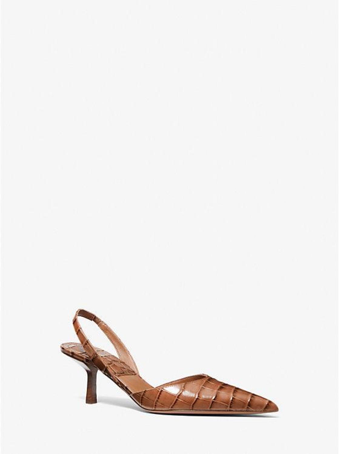 The Italian-made Holly pump is an effortlessly chic finish to any ensemble. An iconic style from the Spring/Summer ’22 runway, this slingback pair is designed in a leg-lengthening, pointed-toe silhouette and set on a stacked kitten heel for all-day allure. Take a cue from the show and wear them with one of the season’s vintage circle skirts. Pump Crocodile embossed leather 100% leather Lining: 100% leather Sole: leather Pointed toe Slip on Heel height: 2" Heel type: stacked Made in Italy Pump Crocodile embossed leather 100% leather Lining: 100% leather Sole: leather Pointed toe Slip on Heel height: 2" Heel type: stacked Made in Italy