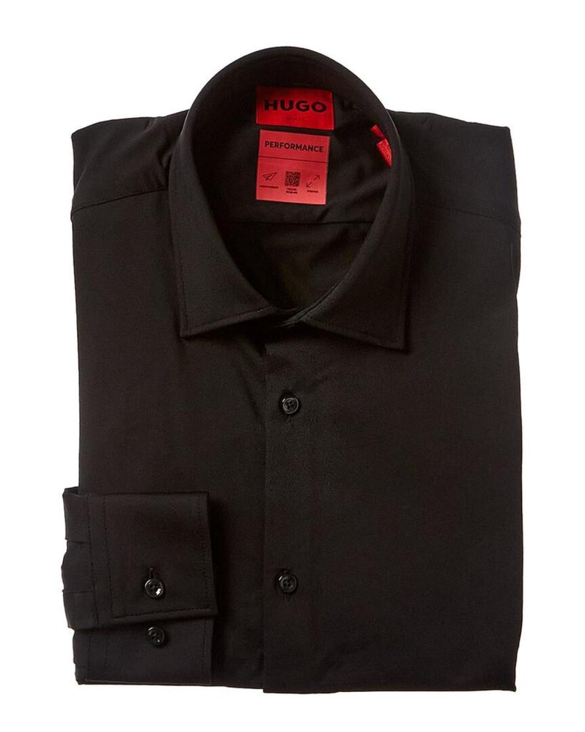Introducing the HUGO Hugo Boss Slim Fit Performance Dress Shirt, a must-have addition to any modern gentleman's wardrobe. This exquisite shirt, brought to you by the renowned brand 'HUGO Hugo Boss,' captures both elegance and functionality.Specifically designed for men seeking a sophisticated and polished look, this dress shirt is expertly crafted from a blend of 90% Polyamide and 10% Elastane. This premium fabric blend ensures both breathability and comfort, allowing you to effortlessly move throughout your day without sacrificing style.The sleek black color adds a touch of sophistication, making it an ideal choice for various formal occasions and professional settings. The spread collar and adjustable barrel cuffs further enhance the shirt's refined appeal, allowing for a customizable fit that exudes confidence.With its button front design, this dress shirt effortlessly blends classic style with a contemporary edge. Whether worn alone or accompanied by a stylish suit jacket, this shirt is sure to make a lasting impression.For your convenience, this shirt is machine washable, offering easy care without compromising its exceptional quality. Additionally, this product is imported, symbolizing the brand's commitment to providing the finest craftsmanship from around the world.Elevate your wardrobe with the HUGO Hugo Boss Slim Fit Performance Dress Shirt. Impeccably designed and meticulously tailored, this shirt embodies the perfect blend of style and functionality for the modern man.