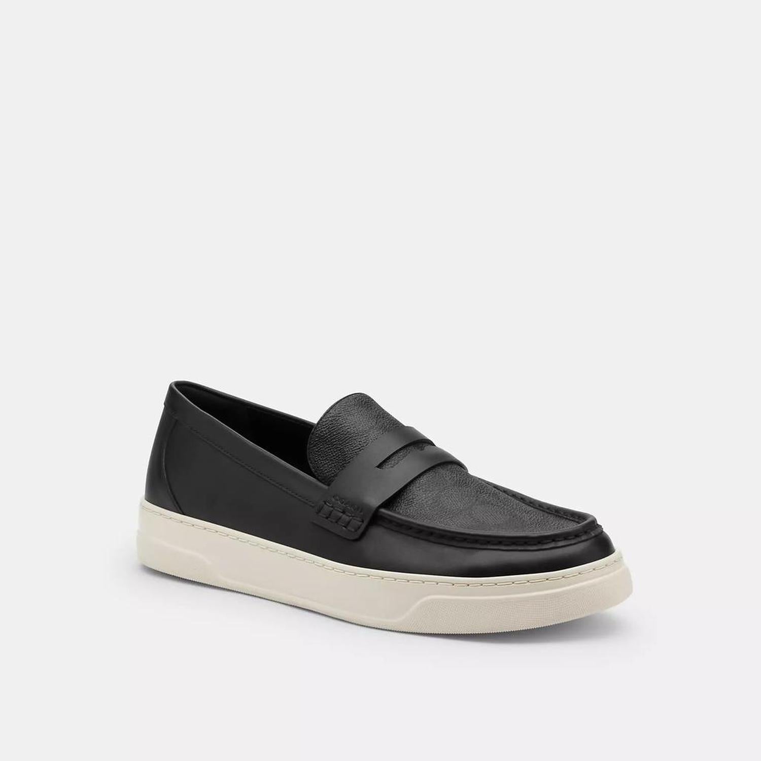 - Leather and Signature coated canvas upper Man-made leather lining and footbed EVA outsole Slip on Style No. CBX05 | Coach Outlet Hybrid Loafer With Signature Canvas - Black, Size - 10.5