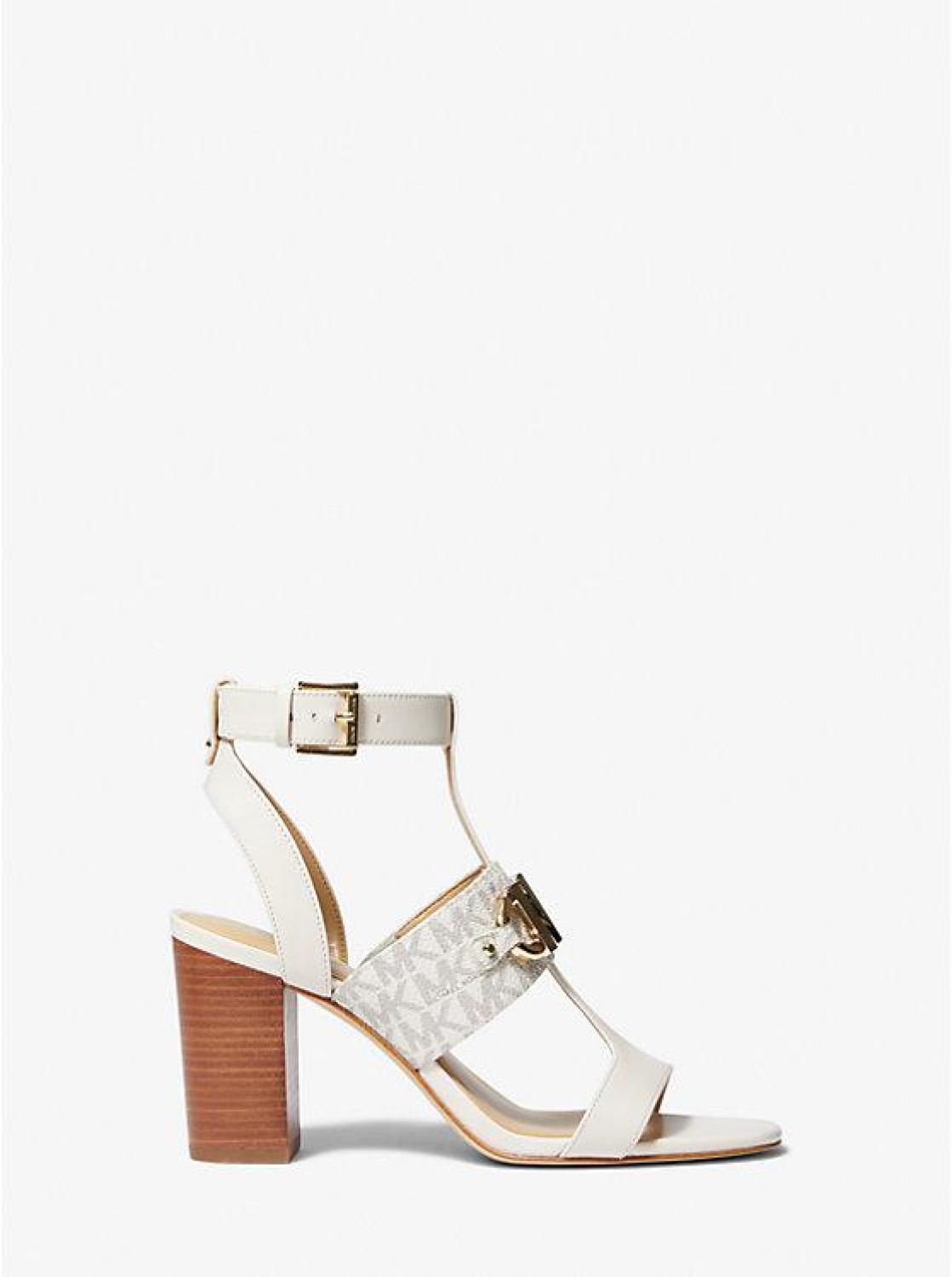 • Elevated yet understated, the Izzy sandals can be dressed up or down seamlessly. Crafted from leather and Signature-print canvas with Empire hardware, this style features a buckled ankle strap and comfortable block heel for day-to-night wear