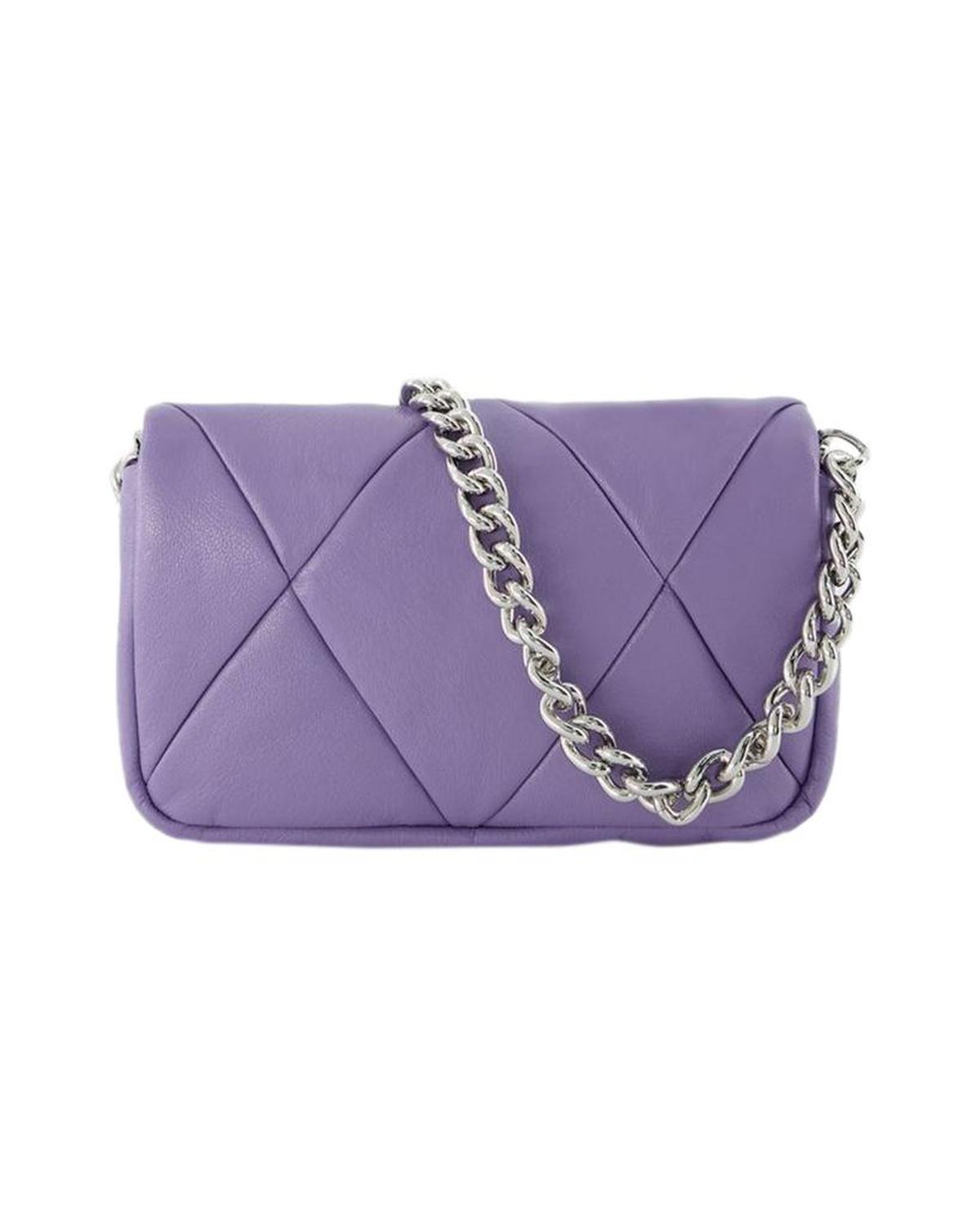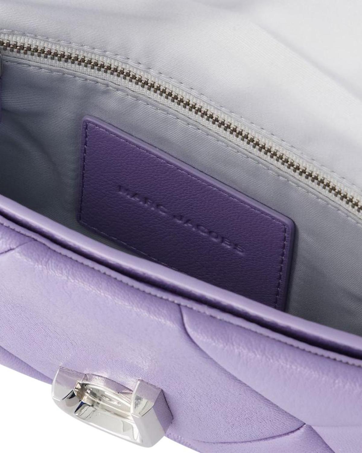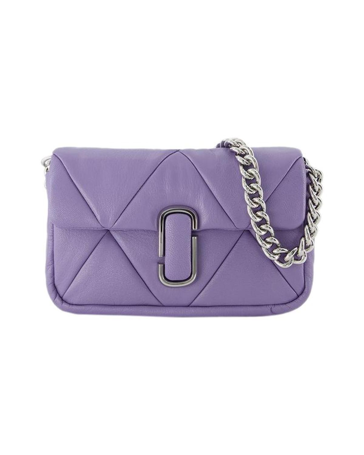 • This mini bag from Marc Jacobs in smooth leather looks great on your shoulder thanks to its chunky silver-tone chain. Fits eveything you need for a busy day, or night! Shoulder strap height - 68 cm. Worn on the shoulder - one shoulder strap. Material - smooth goatskin. Lining - leather. Colour - Violet - 568 Daybreak. Closure - flap with magnetic clasp. Interior - three card slots.