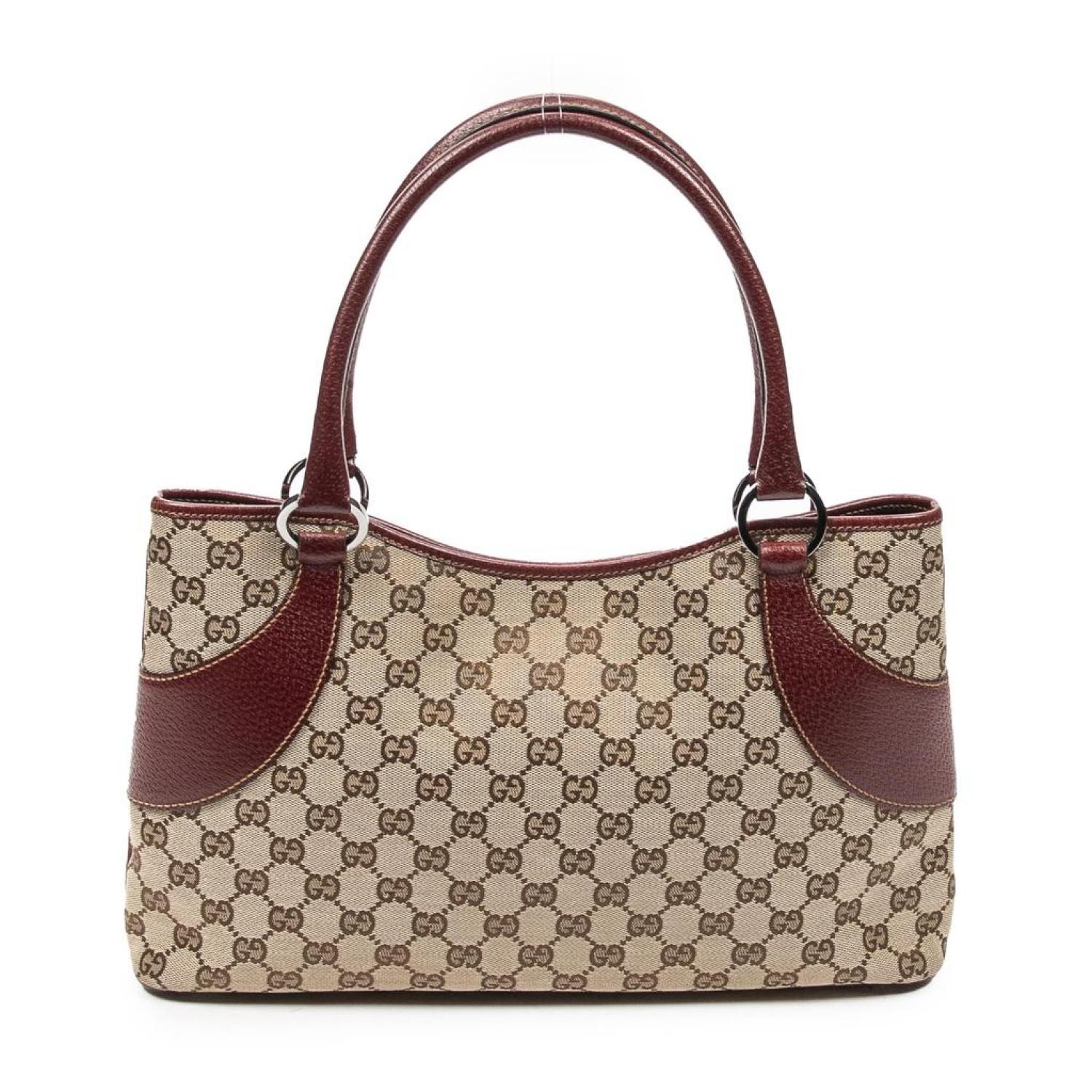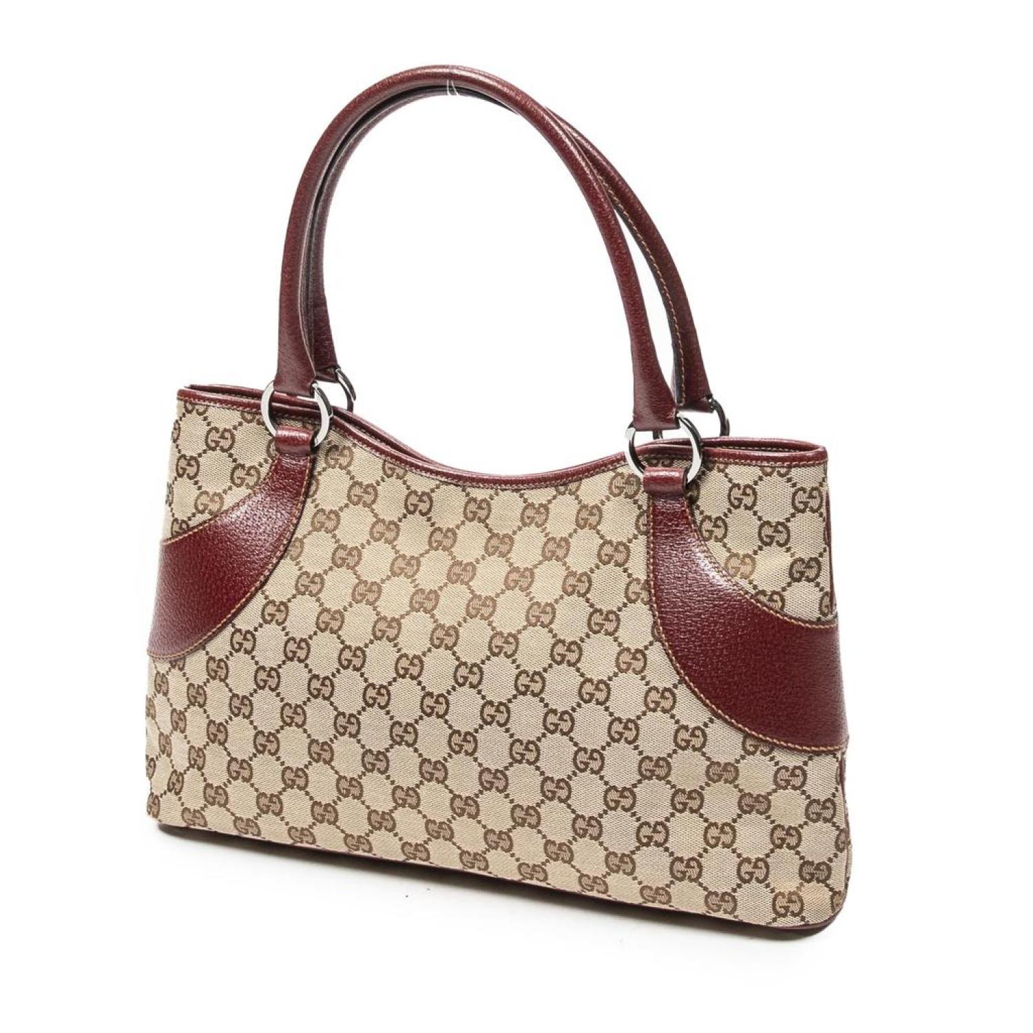 Gucci Shoulder Bag in Beige/Brown/Burgundy Monogrammed Canvas and Silver hardware. Dimensions - 35,5*21*6cm. Serial number - 113015 001013. Inclusions - dustbag. Pre-Owned