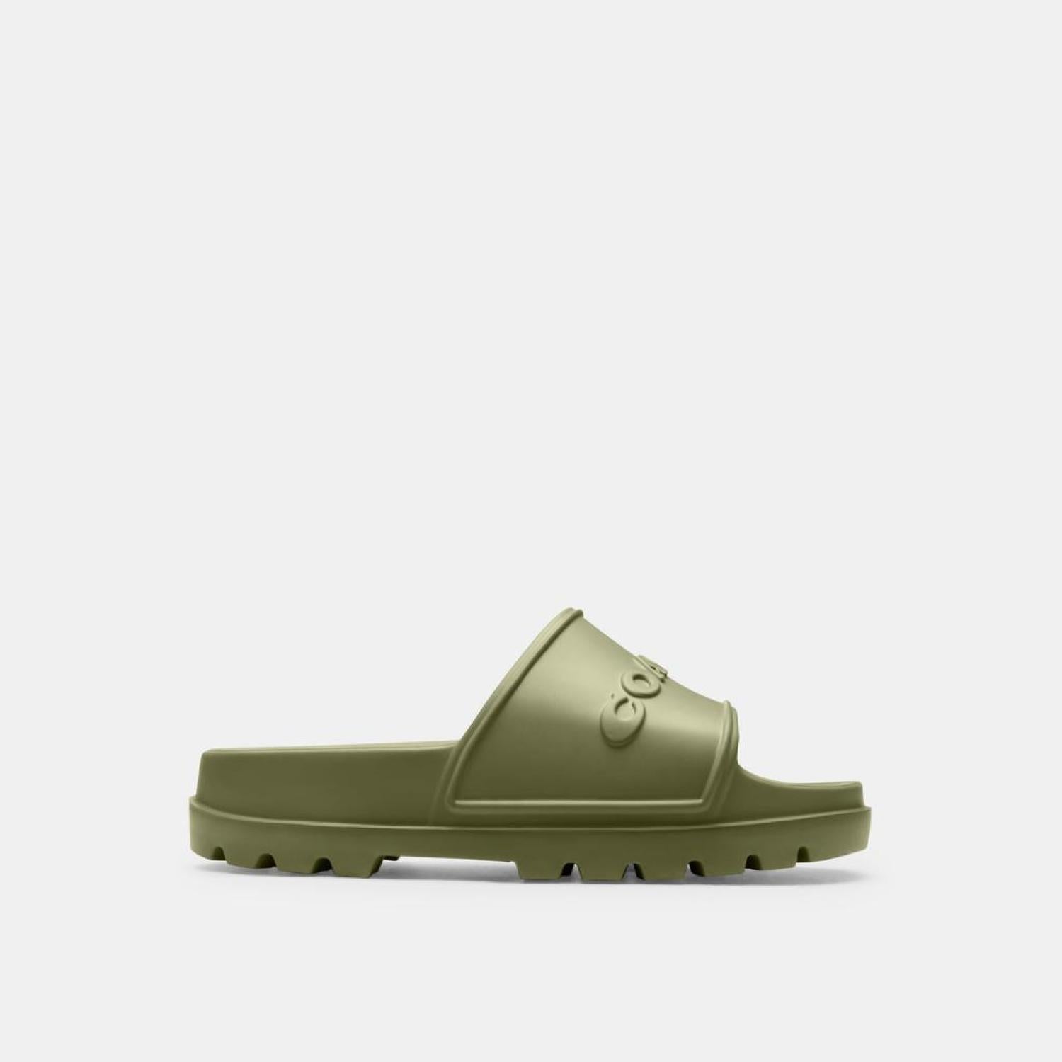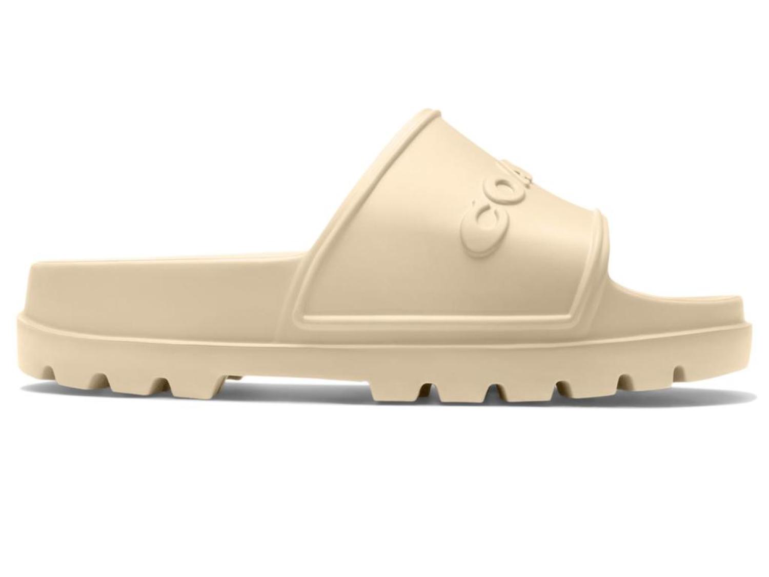 Take a round of the town on a hot day evening with your dog wearing the COACH™ Jesse Rubber Slide footwear. It is crafted from synthetic EVA upper, synthetic rubber lining, and contoured EVA footbed. A slip-on style with open toe and wide vamp with signature logo embossing make the footwear subtle in look.