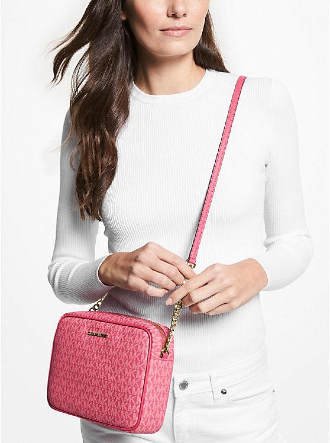 Designed in a clean-lined silhouette from Signature-print canvas, the Jet Set crossbody bag is an instant classic. Polished hardware speaks to a luxe sensibility, while a spacious interior offers easy organization for your essentials. Wear it to add a novelty twist to any ensemble.