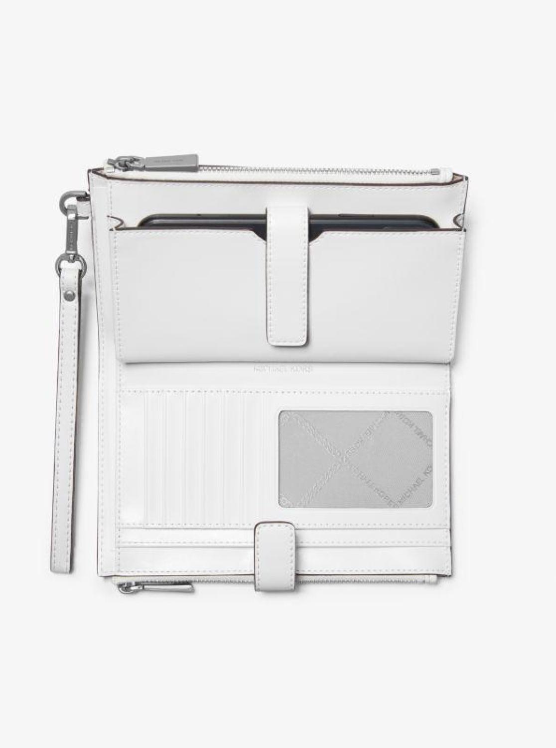 - Defined by center stripes and our allover initial print, this Jet Set wallet has two zip sides that unfold to reveal a center with pockets for all the essentials—from credit cards to your smartphone. A detachable wristlet strap makes it versatile enough to carry alone or throw into a tote. • Smartphone wallet • Logo-print canvas • 69% coated canvas/17% polyester/13% cotton/1% polyurethane • Silver-tone hardware • 7.25"W X 4"H X 1.5"D • Handle drop: 6" • Exterior details: 2 top zip pockets • Interior details: 6 card slots, ID window, phone pocket, 3 slip pockets • Lining: 100% polyester • Zip/snap fastening • Imported • Smartphone wallet • Logo-print canvas • 69% coated canvas/17% polyester/13% cotton/1% polyurethane • Silver-tone hardware • 7.25"W X 4"H X 1.5"D • Handle drop: 6" • Exterior details: 2 top zip pockets • Interior details: 6 card slots, ID window, phone pocket, 3 slip pockets • Lining: 100% polyester • Zip/snap fastening • Imported