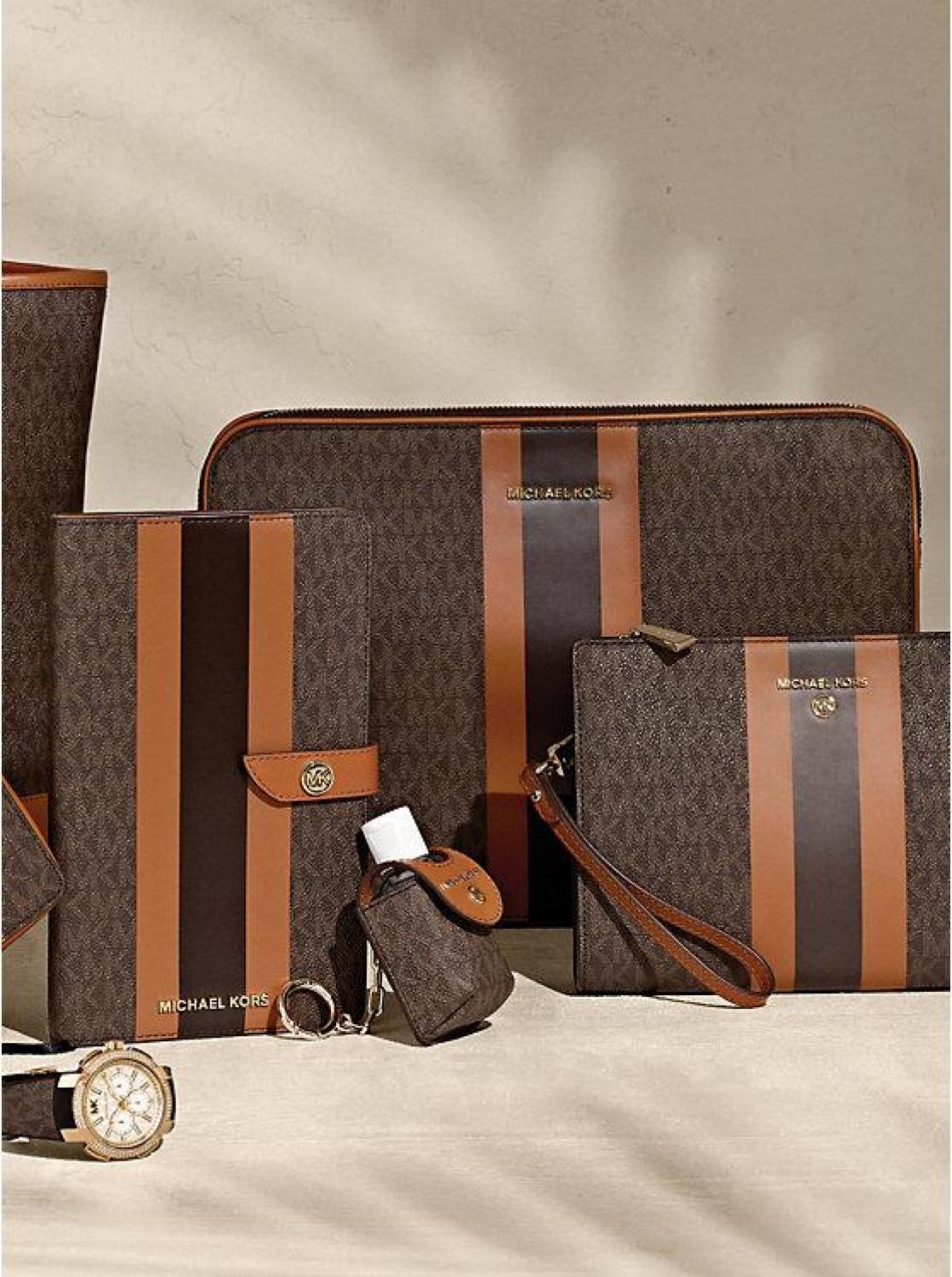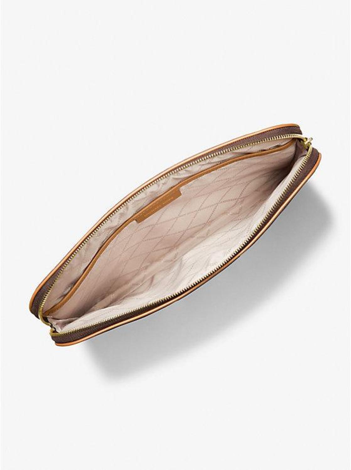 Tote your tech in style with our Jet Set laptop case. Crafted from our Signature logo-print canvas with contrasting center stripes, this case is equipped with a lined and pocketed interior—so you can stash a few necessities alongside your laptop. Laptop case Logo-print canvas 69% coated canvas/17% polyester/13% cotton/1% polyurethane Trim: 100% leather Gold-tone hardware 13.75”W X 10.25”H X 1.25”D 13” laptop compatibility Interior details: back slip pocket Lining: 100% polyester Zip fastening Imported Laptop case Logo-print canvas 69% coated canvas/17% polyester/13% cotton/1% polyurethane Trim: 100% leather Gold-tone hardware 13.75”W X 10.25”H X 1.25”D 13” laptop compatibility Interior details: back slip pocket Lining: 100% polyester Zip fastening Imported