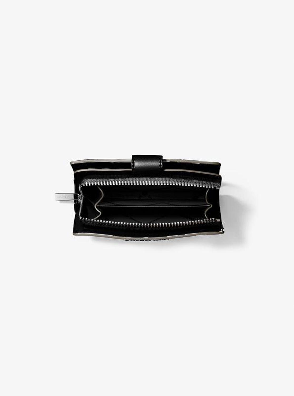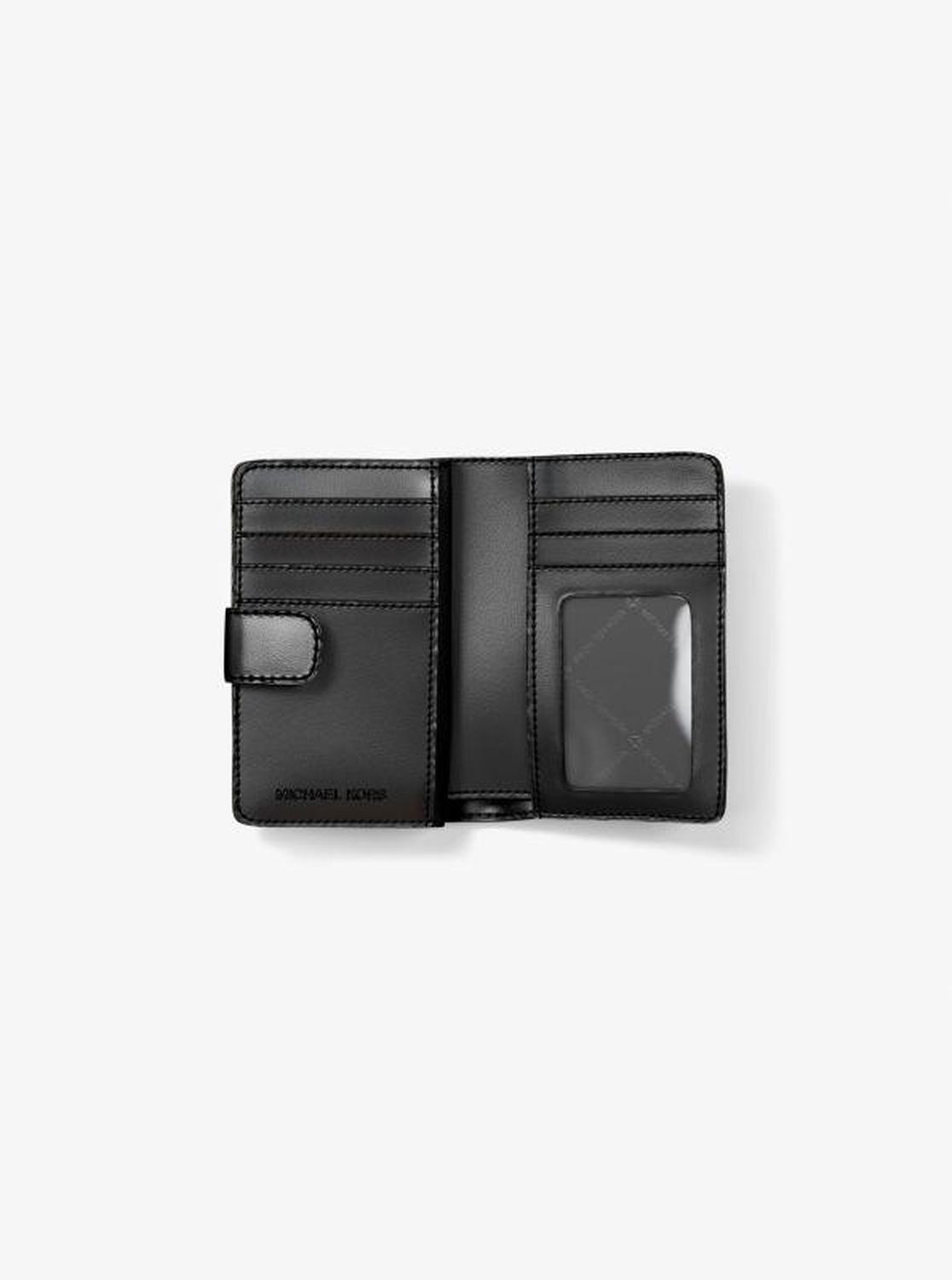 Michael Kors—defining modern glamour since 1981. • Wallet • Polyurethane blend • 60% polyurethane/20% cotton/20% polyester • Silver-tone hardware • 5.25"W X 3.5"H X 1.25"D • Interior details: 1 zip pocket, 3 slip pockets, 6 card slots, ID window • Lining: 100% polyester • Snap fastening • Imported • Wallet • Polyurethane blend • 60% polyurethane/20% cotton/20% polyester • Silver-tone hardware • 5.25"W X 3.5"H X 1.25"D • Interior details: 1 zip pocket, 3 slip pockets, 6 card slots, ID window • Lining: 100% polyester • Snap fastening • Imported