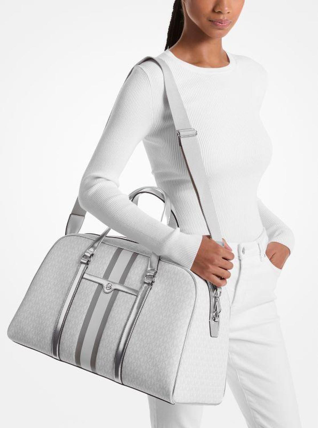 Jet Set Travel Extra-Large Striped Metallic Signature Logo Weekender Bag