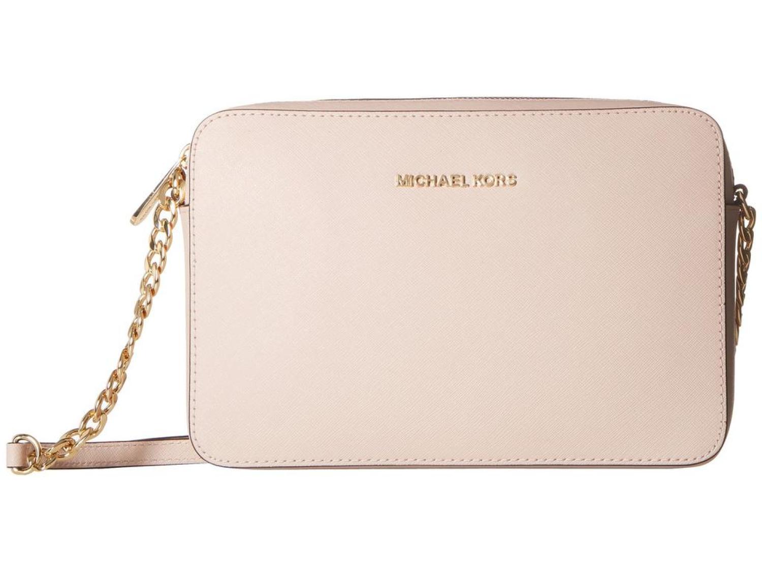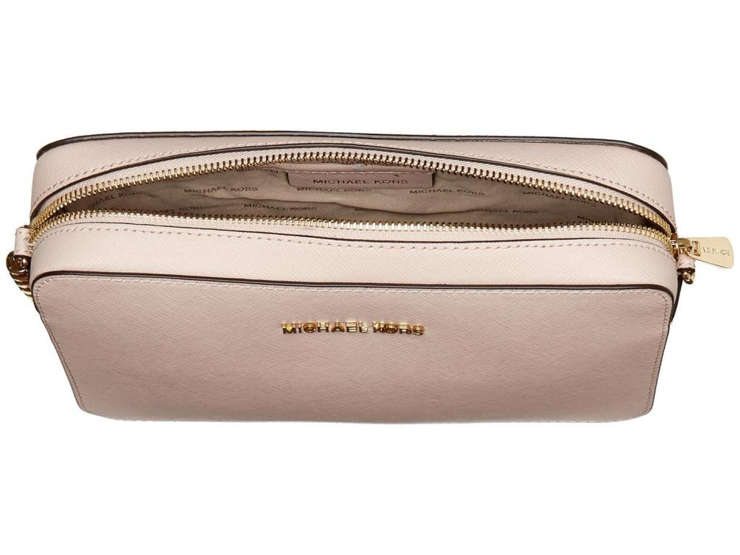 This MICHAEL Michael Kors® Crossbody is made of sugar, spice, and everything fashionable. Made of Saffiano leather. Zipper closure. Adjustable crossbody strap. Signature logo hardware. Custom woven lined interior features slip pockets. Flat base. Imported. Please note, the hardware color and interior lining may differ from the color shown in the photo. Measurements: Bottom Width: 9 1/4 in Depth: 2 in Height: 6 1/4 in Strap Length: 53 in Strap Drop: 26 in Weight: 14 oz