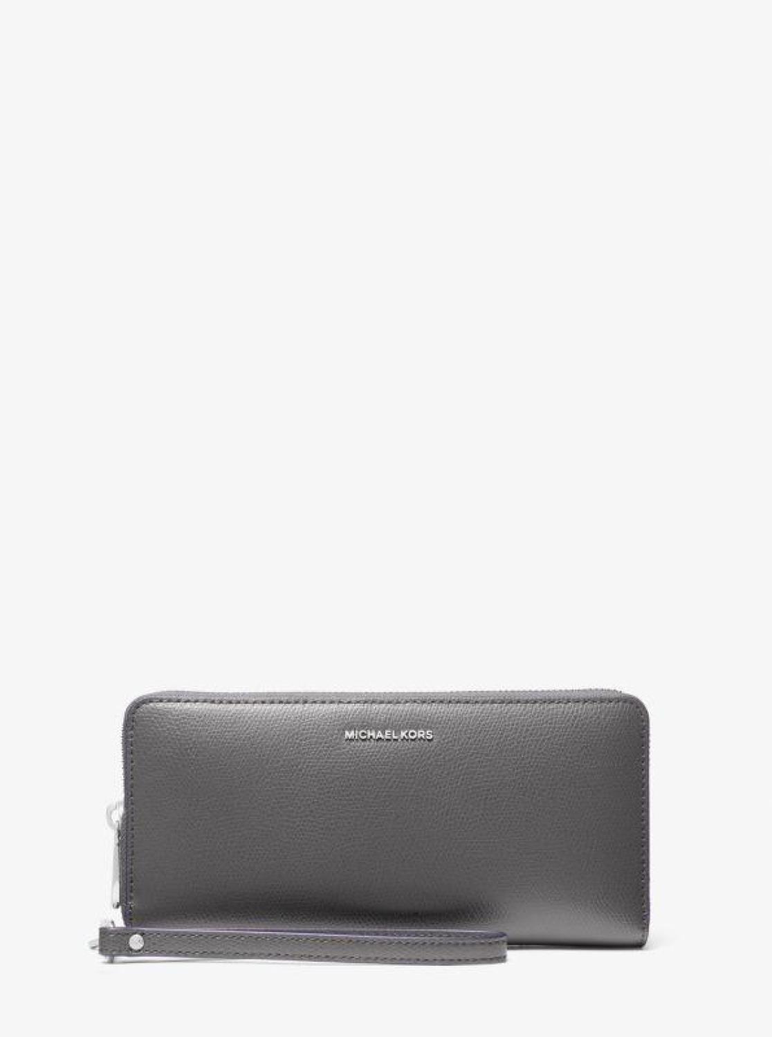 Constructed from textured leather, this sleek wallet is the perfect all-in-one accessory. It features a dedicated pocket for your phone and a wealth of card slots for easy organization. A must-have when traveling or commuting, it can easily be tucked into your carryall or worn as a wristlet. • Wallet • Leather • 100% leather • Silver-tone hardware • 8.25"W X 4"H X 1"D • Interior details: 5 slip pockets, zip pocket, 17 card slots • Lining: 55% polyester/45% linen • Zip fastening • Imported • Wallet • Leather • 100% leather • Silver-tone hardware • 8.25"W X 4"H X 1"D • Interior details: 5 slip pockets, zip pocket, 17 card slots • Lining: 55% polyester/45% linen • Zip fastening • Imported