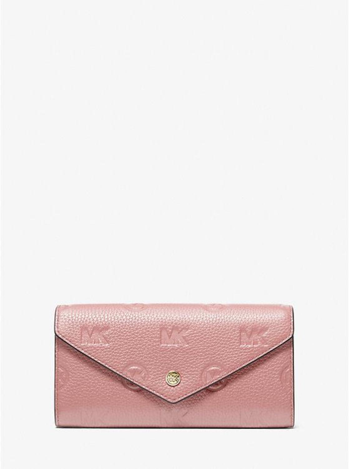 Rendered in logo-embossed pebbled leather, this envelope-shaped wallet is the perfect all-in-one accessory.  It features a dedicated coin pocket and a wealth of card slots for easy organization. A must-have when traveling, tuck it into your everyday carryall for signature style.