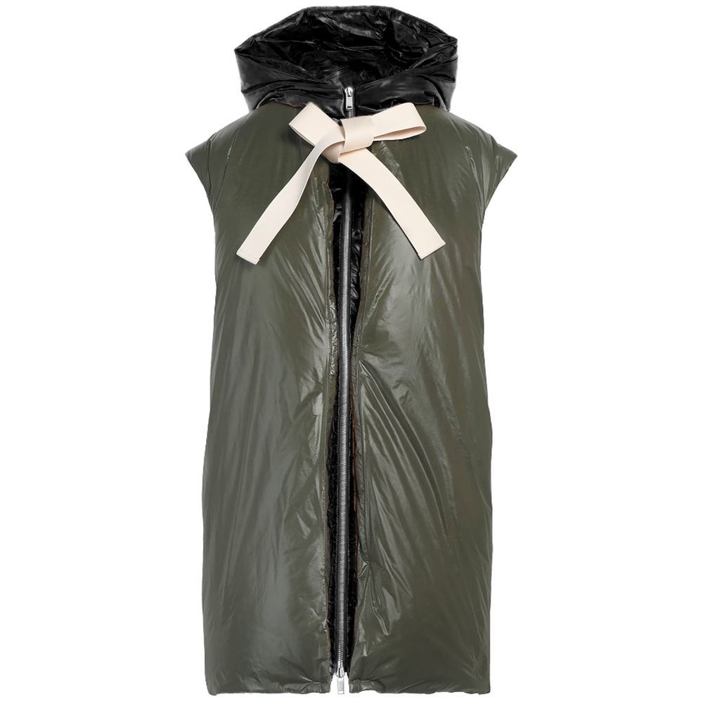 • Jil Sander nylon down jacket padded with goose down, removable sleeves, zip fastening and hood, drawstring waist for tying