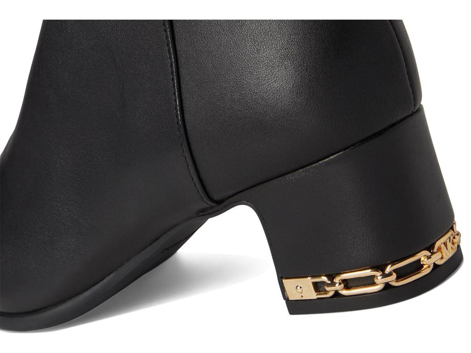 • The MICHAEL Michael Kors® June Flex Boots are designed with comfort in mind, from flex construction to extra cushioned insoles detailed with elevated empire chain hardware on the heel, adding a sophisticated touch. The long boots have a leather upper, polyester lining, extra-padded socks, and block heels.