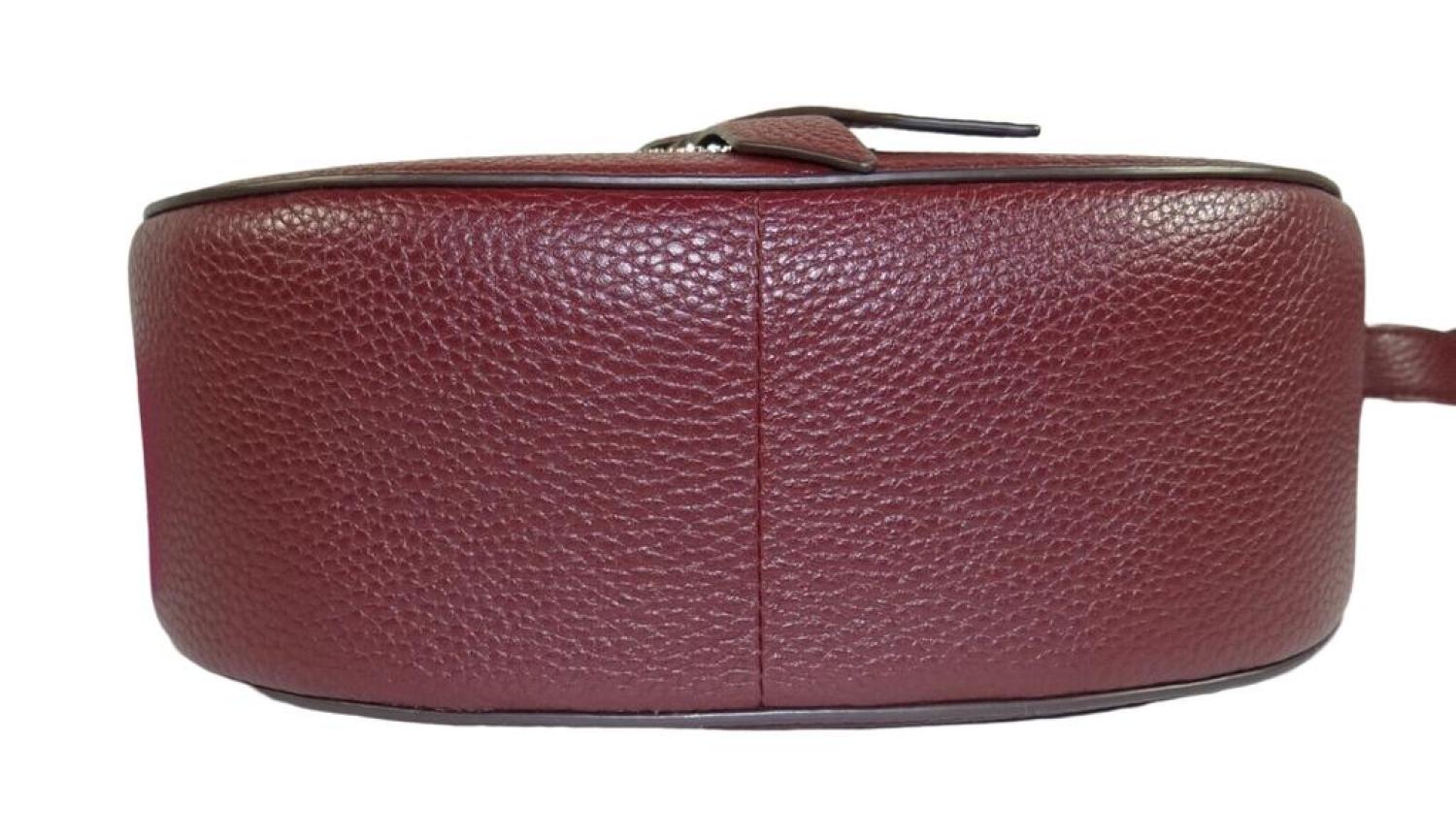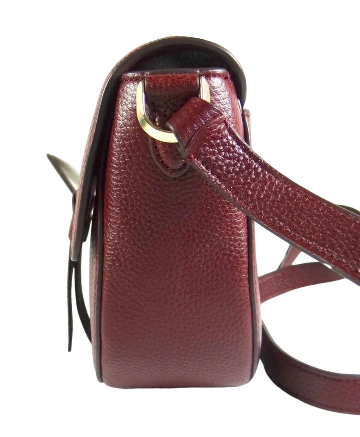 Made of pebbled leather; strap drop - 22 Inch, pebbled leather with smooth Italian leather trim, textured PVC lining; pin mount logo. saddle bag with magnetic snap flap closure, interior zipper pocket, exterior slip pocket. adjustable crossbody strap, fits iPhone xs max. Measurements - Length - 8 x Height - 7.25 x Width - 2.75 Inches. Comes with original tags.