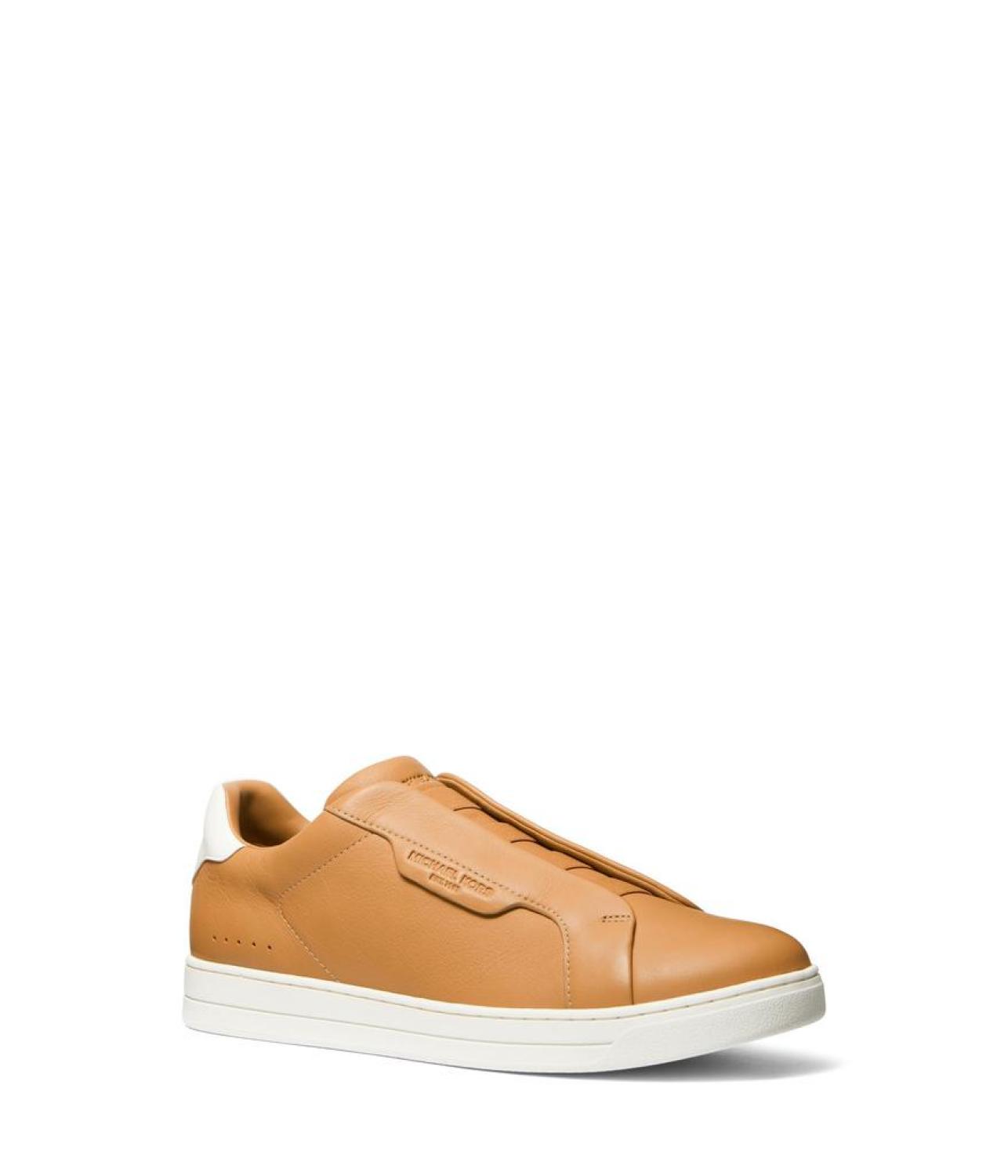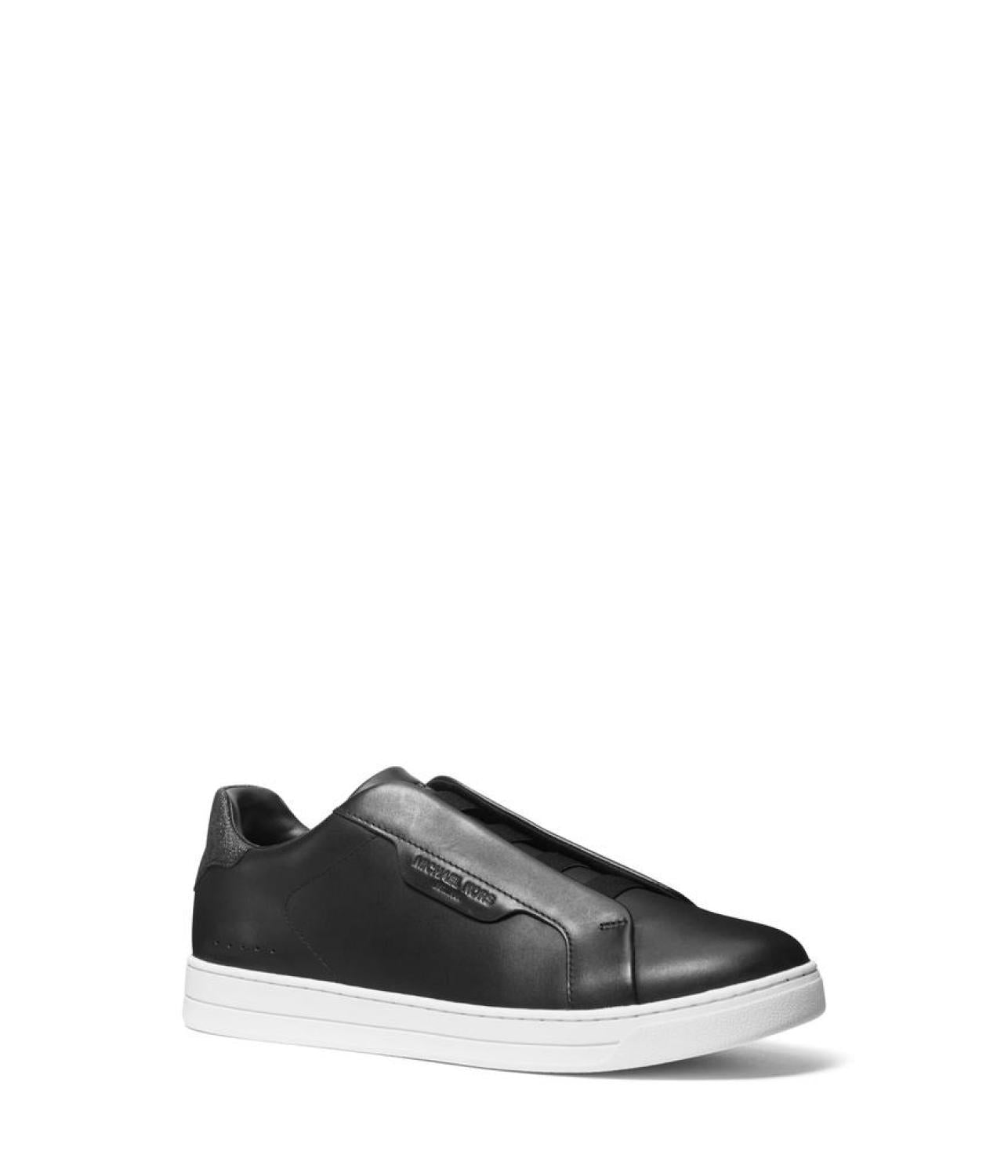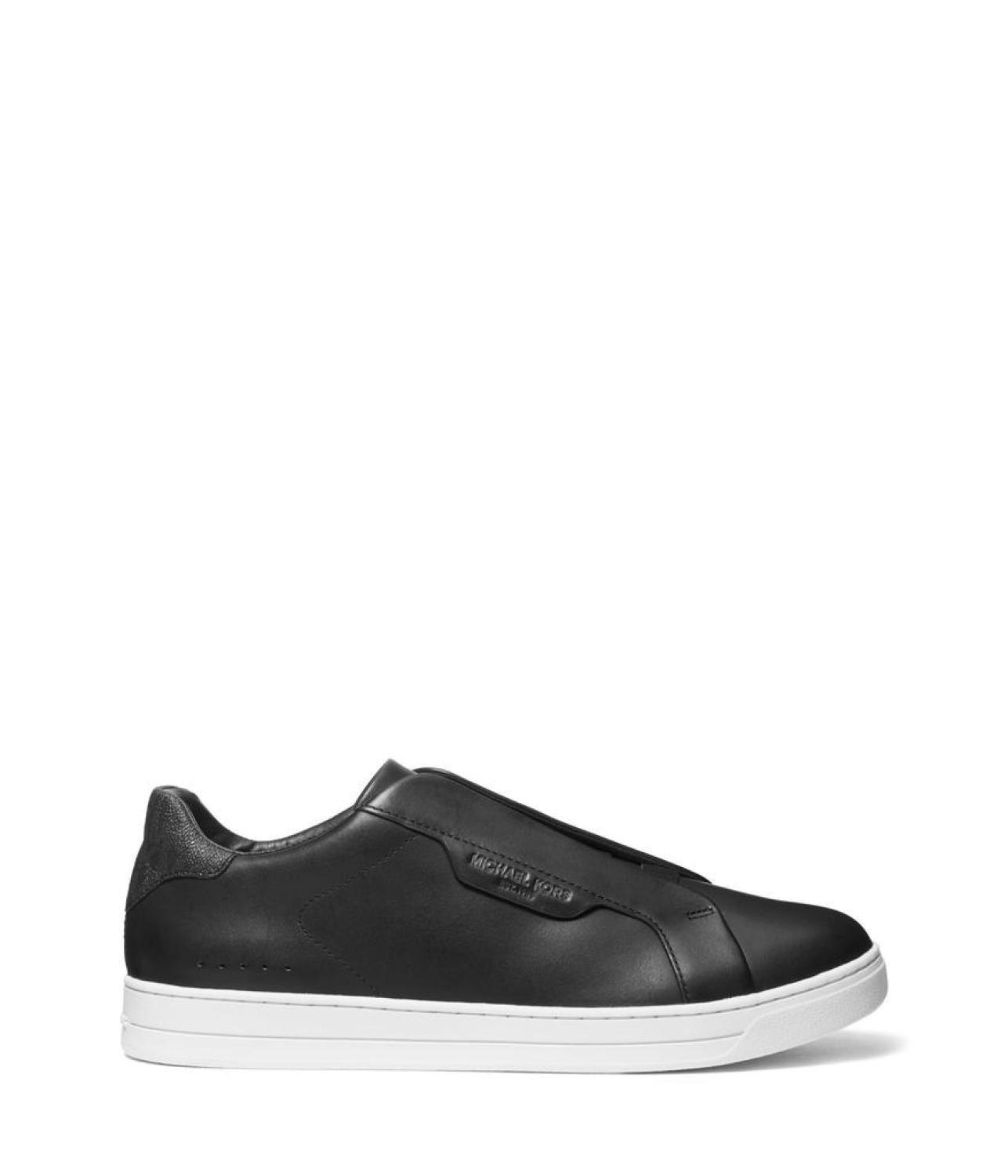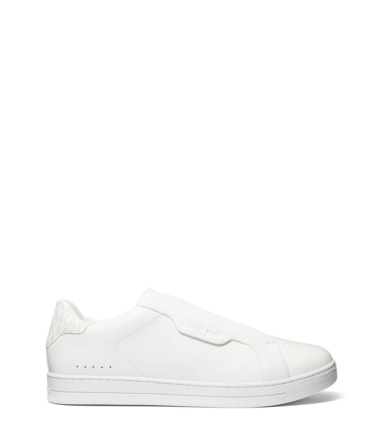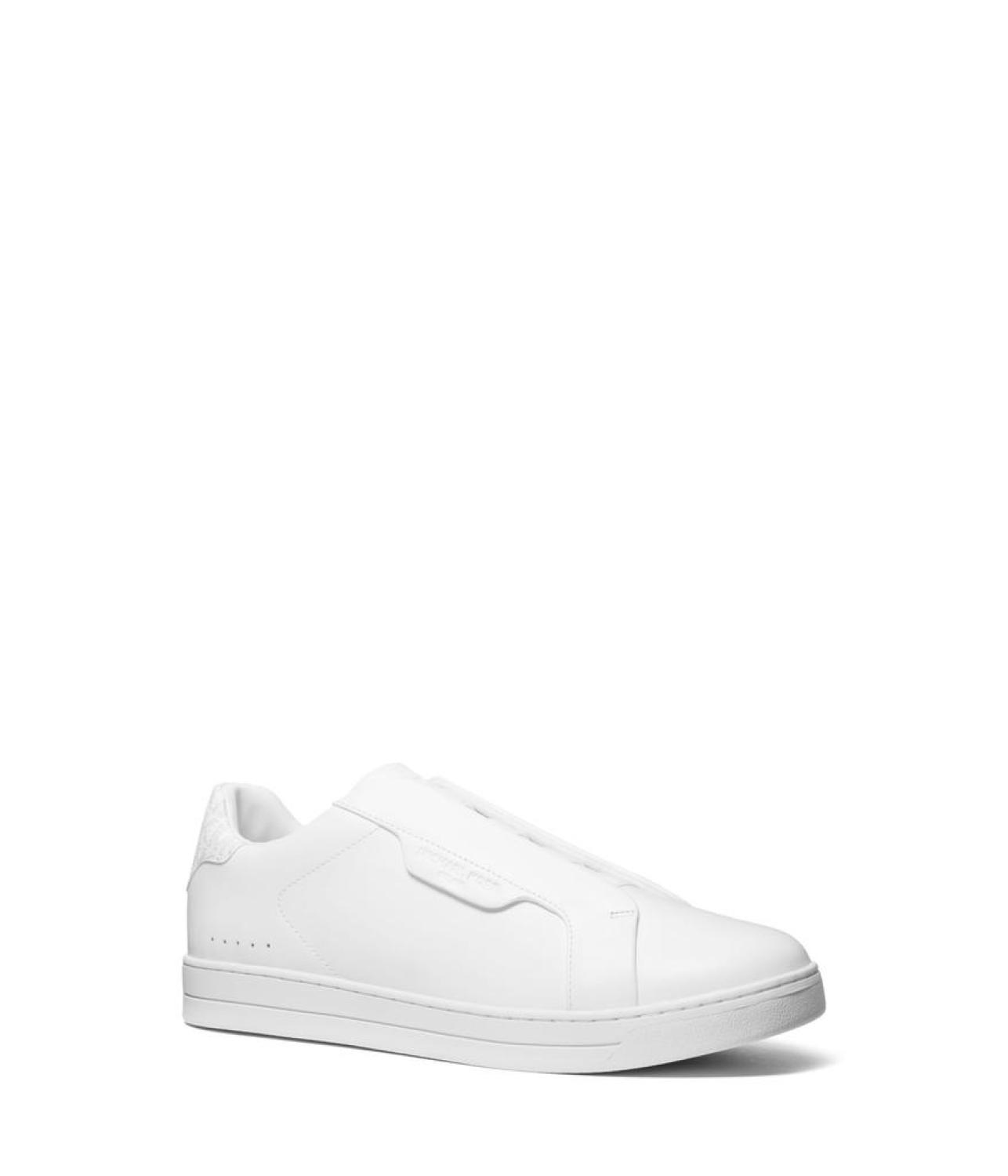 A minimal modern aesthetic, the Michael Kors® Keating Slip On Sneakers feature a cupsole construction with a smooth leather upper, a breathable cotton lining, and a cushioned insole. Coming in an easy slip-on style, these shoes display webbing upper straps and a contrasting heel tab for added style. Round toe. Rubber outsole. Imported.