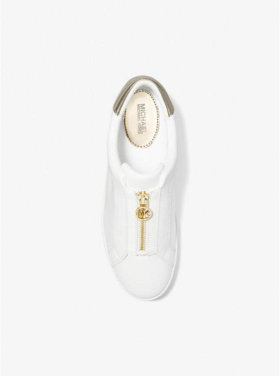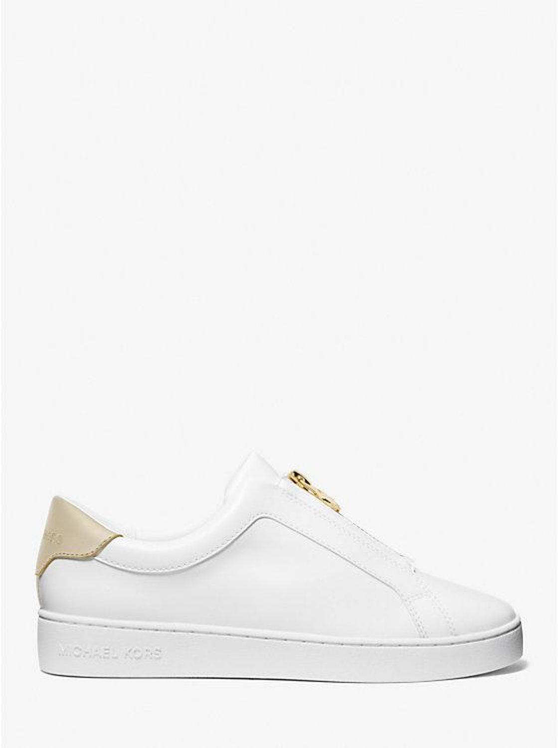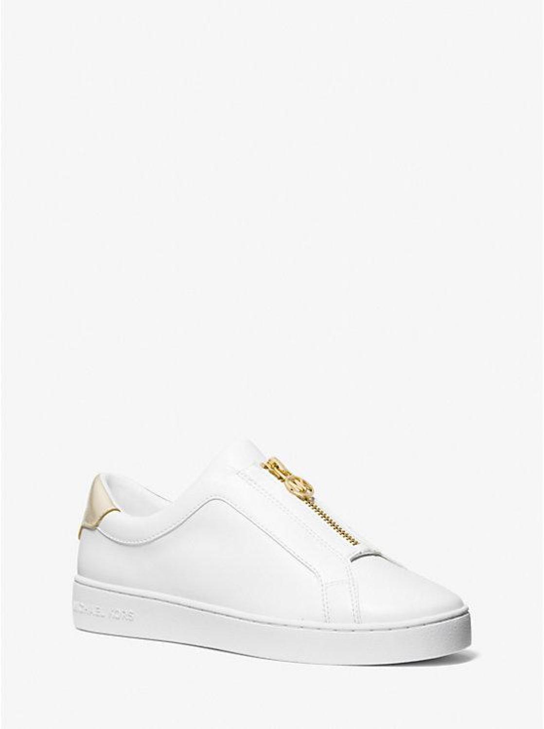 • Updated with a practical and stylish zip-up detail, our latest Keaton sneaker is a classic pair you’ll reach for often. The low-top silhouette features slightly cushioned insoles for comfort, while the rubber soles will grip slick city streets. Showcase the metallic back panel with cropped jeans and mini hemlines.
