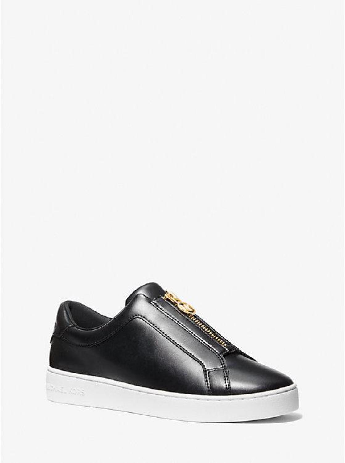 Updated with a practical and stylish zip-up detail, our latest Keaton sneaker is a classic pair you’ll reach for often. The low-top silhouette features slightly cushioned insoles for comfort, while the rubber soles will grip slick city streets. Showcase the glossy back panel with cropped jeans and mini hemlines. • Trainer • Polyurethane • 100% polyurethane • Lining: cotton • Sole: rubber • Round toe • Zip fastening • Imported • Trainer • Polyurethane • 100% polyurethane • Lining: cotton • Sole: rubber • Round toe • Zip fastening • Imported