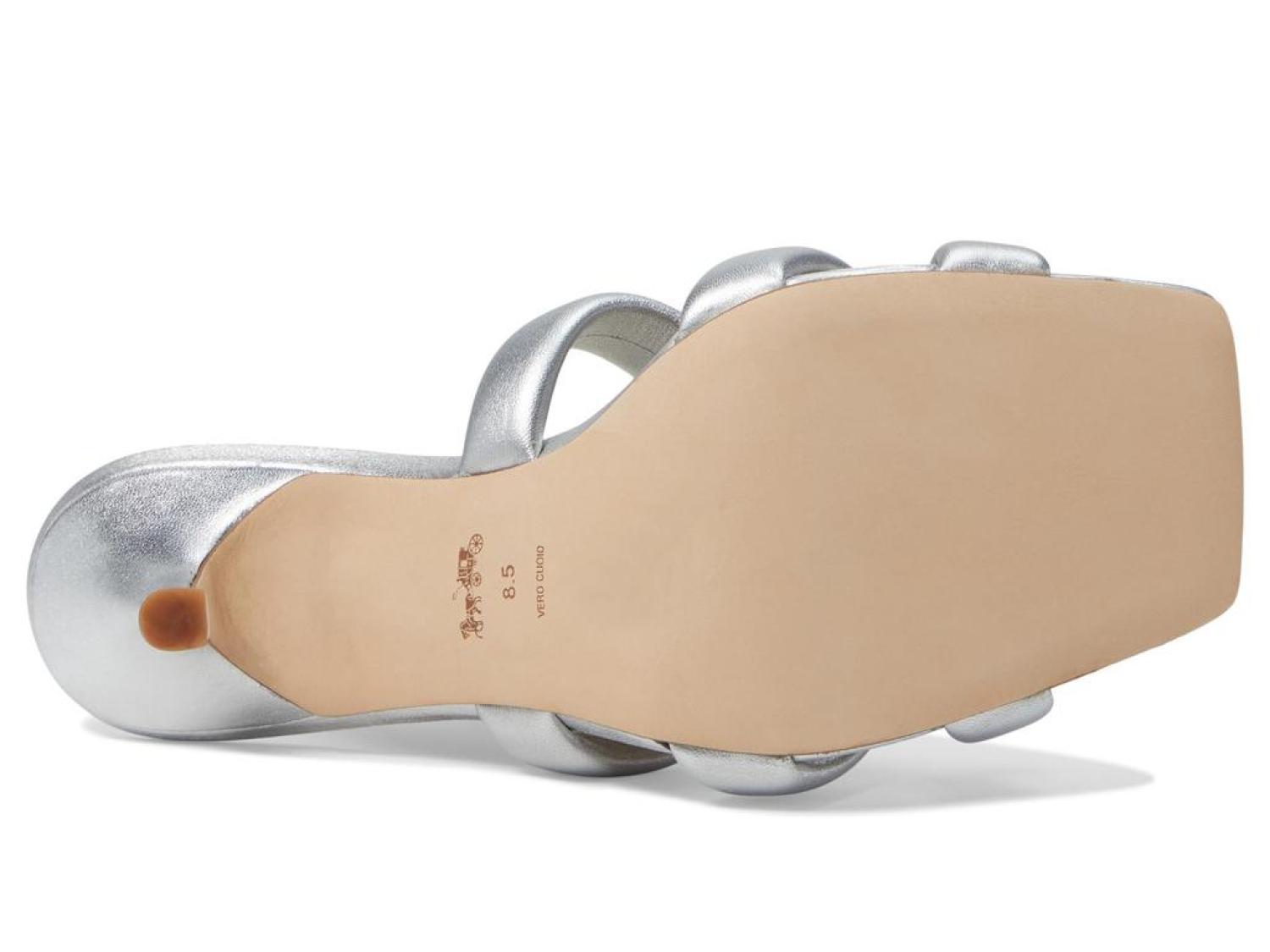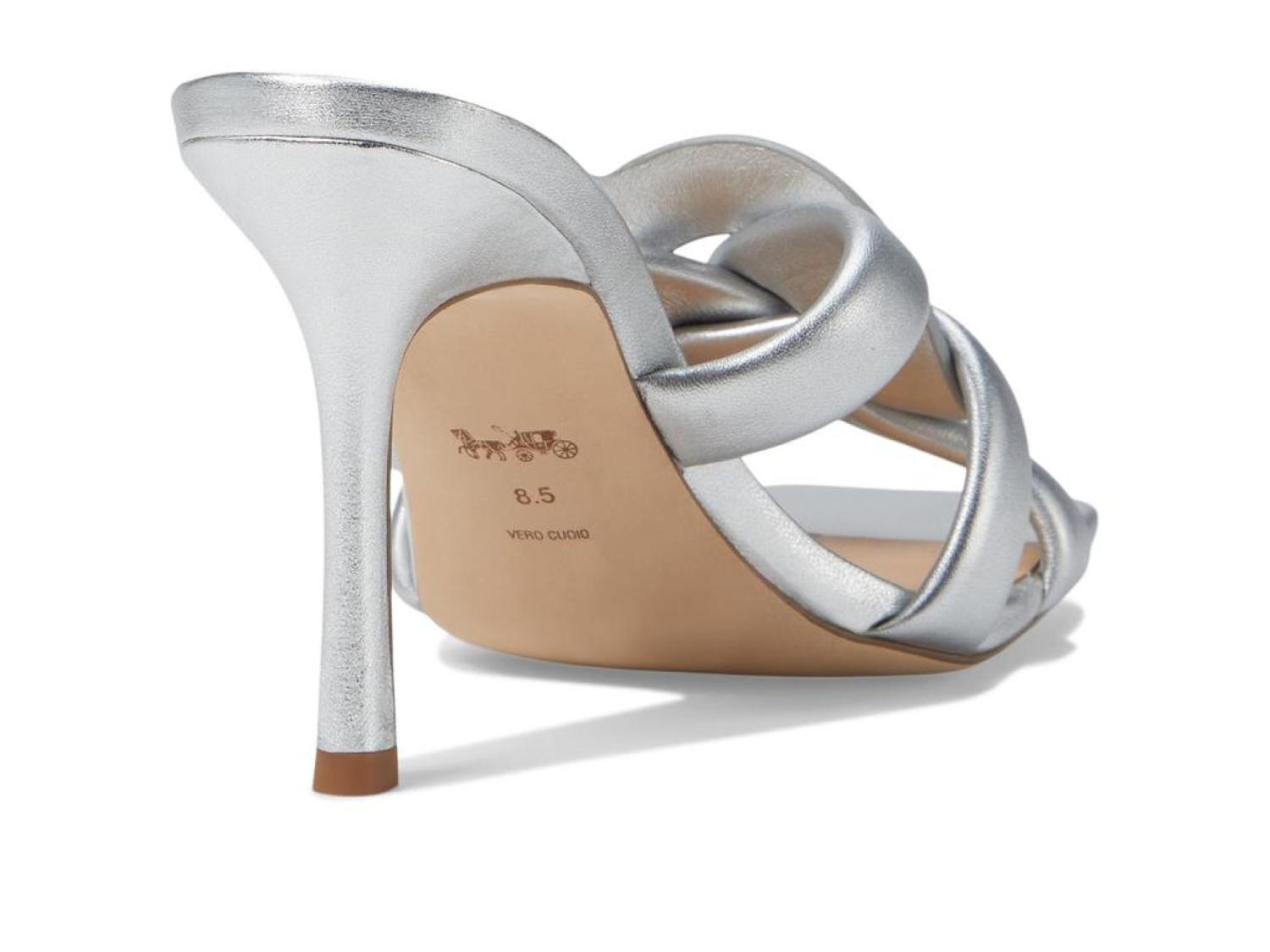 Please Note: COACH™ items cannot be shipped to military addresses (APO or FPO) and addresses in Hawaii, the Virgin Islands, Guam or any other locations outside of the continental US. Add a chic look to your outfits by pairing them with the COACH® Kellie Sandals. Crafted from leather, these slim heel sandals are perfect to pair with fashionable denim to party dresses. The plush and pillowy strap of these sandals offer added comfort while the intricate knot gives them a bold look. They feature a convenient slip-on style for easy on and off. Get ready for an event or casual outing with these leather sandals. Leather upper. Memory foam insole and leather lining. Tall stiletto heel. Brand detailing on the footbed. Open, square toe. Non-slip leather outsole offers durability and support. Imported. Product measurements were taken using size 7, width B - Medium. Please note that measurements may vary by size. Measurements: Heel Height: 4 1/2 in-