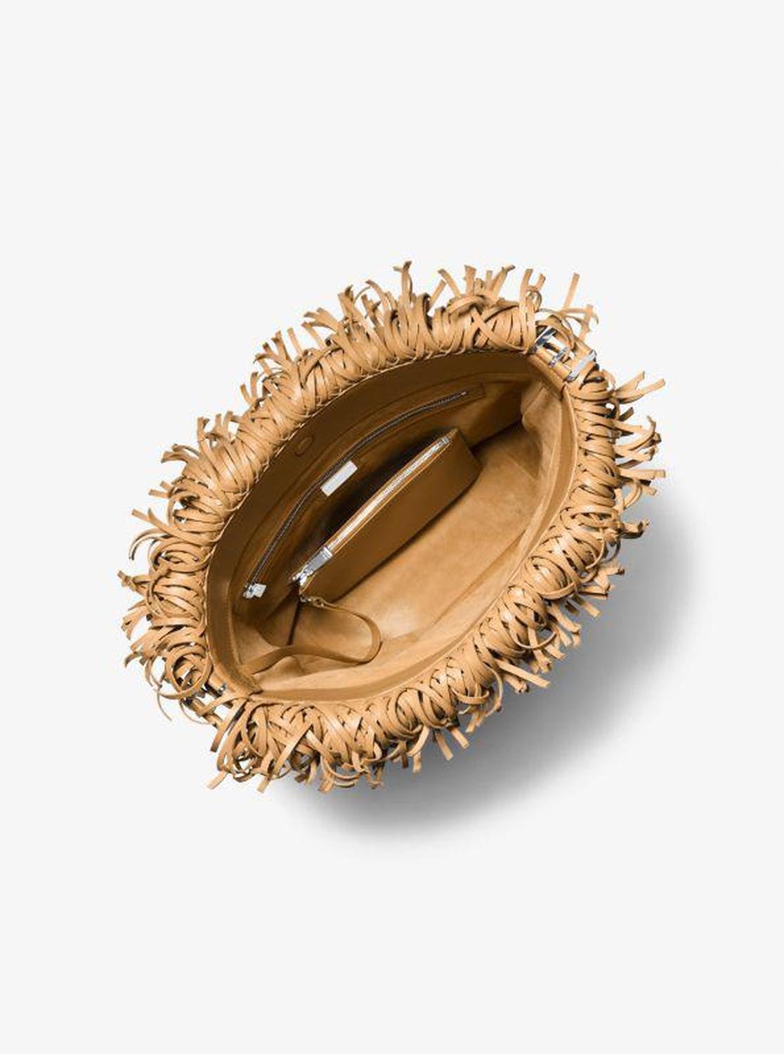 The Kiera hobo bag is a masterclass in exquisite Italian craftsmanship, as seen on the Spring/Summer 2025 runway. Intricately cut strips of supple calf leather are hand woven together and showcase an artisanal finish, while delicate fringed trim along the top creates playful movement. Designed with a thick, double buckled adjustable strap, this luxurious accessory exudes the insouciant sophistication of the season. Style it with a slouchy trench and fluid shorts to complement the warm-weather staple. • Hobo bag • Leather • 100% leather • Silver-tone hardware • 17.3"W X 18.5"H X 5.5"D • Handle drop: 18” • Lining: 100% suede • Snap fastening • Made in Italy • Hobo bag • Leather • 100% leather • Silver-tone hardware • 17.3"W X 18.5"H X 5.5"D • Handle drop: 18” • Lining: 100% suede • Snap fastening • Made in Italy