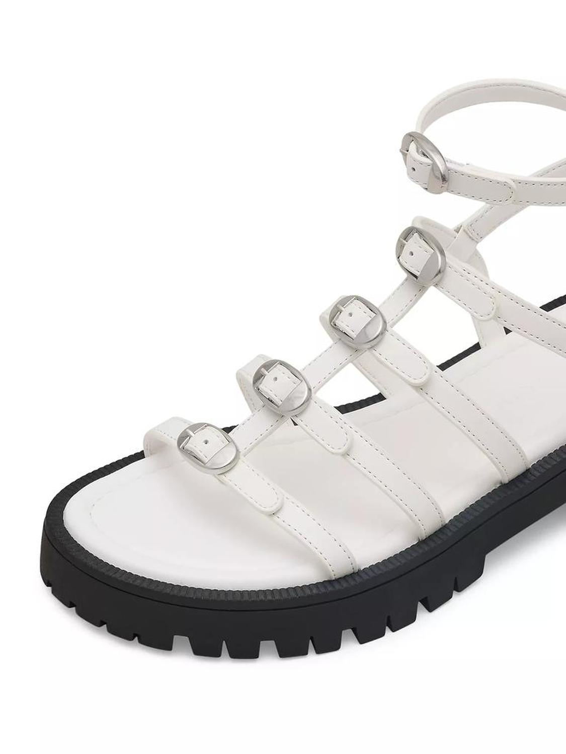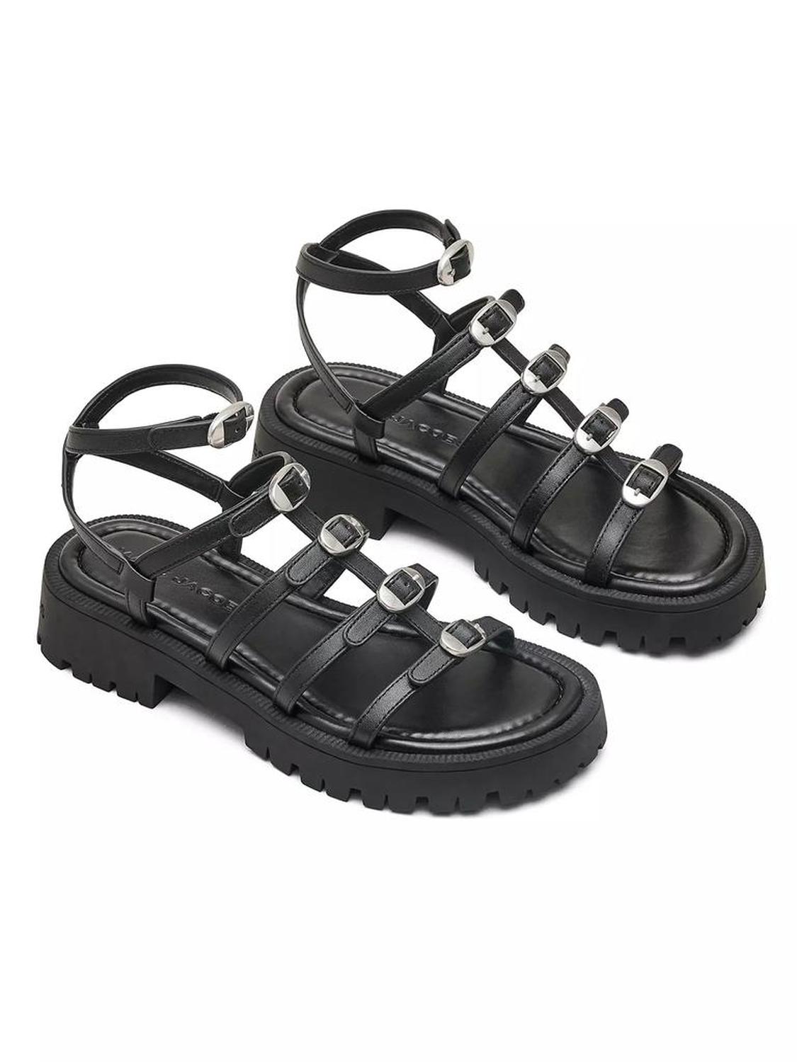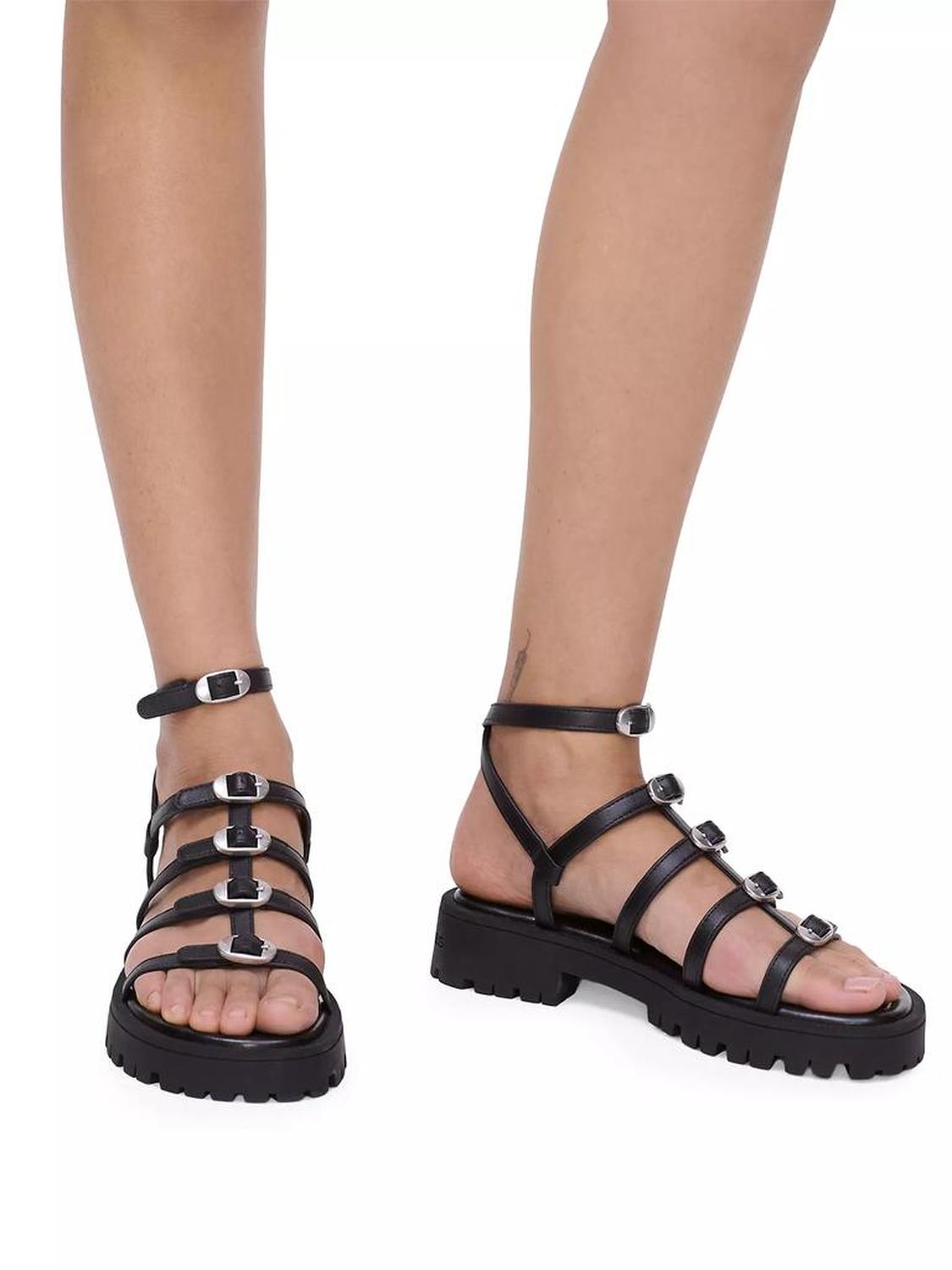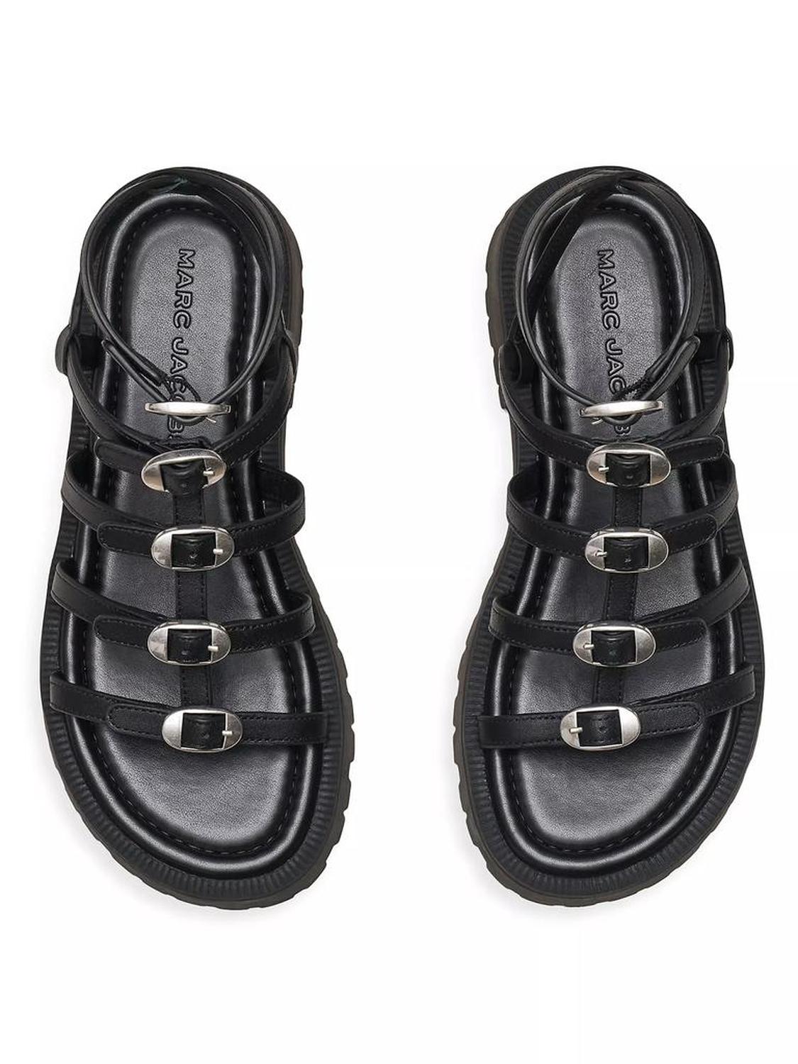 • Crafted of luxe leather, Marc Jacobs' Kiki gladiator sandals showcase a strappy caged vamp, adjustable ankle strap, and lug sole.
