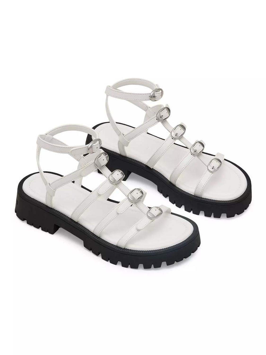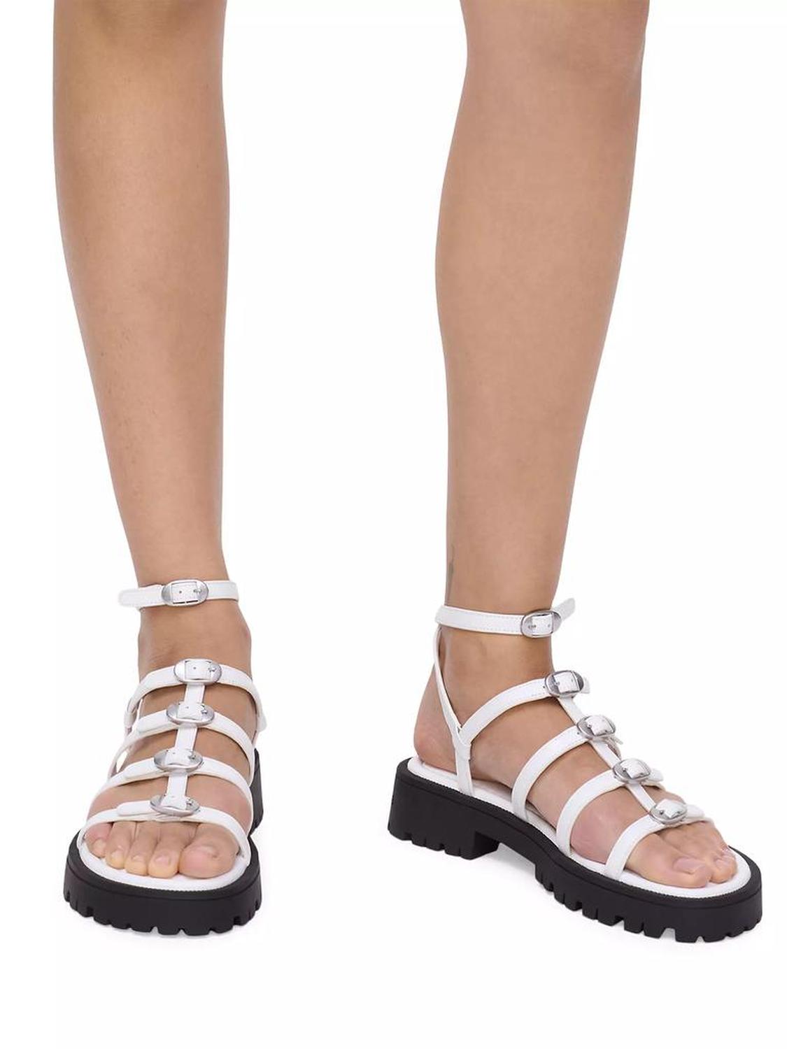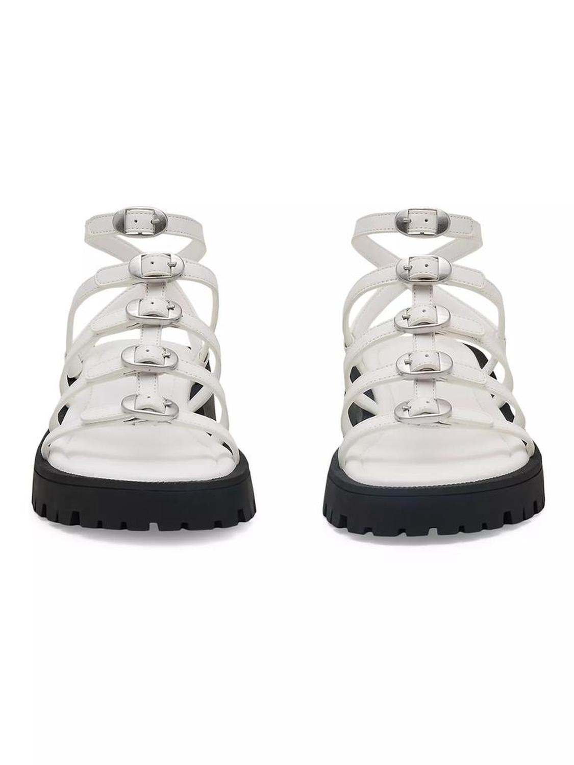 Crafted of luxe leather, Marc Jacobs' Kiki gladiator sandals showcase a strappy caged vamp, adjustable ankle strap, and lug sole.