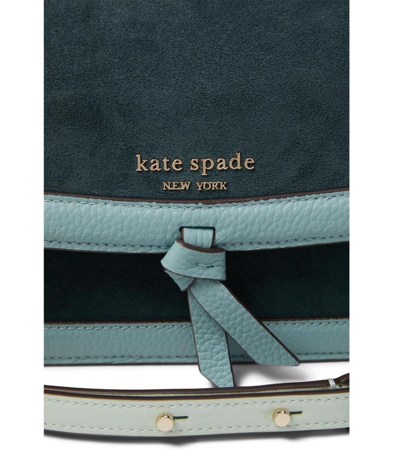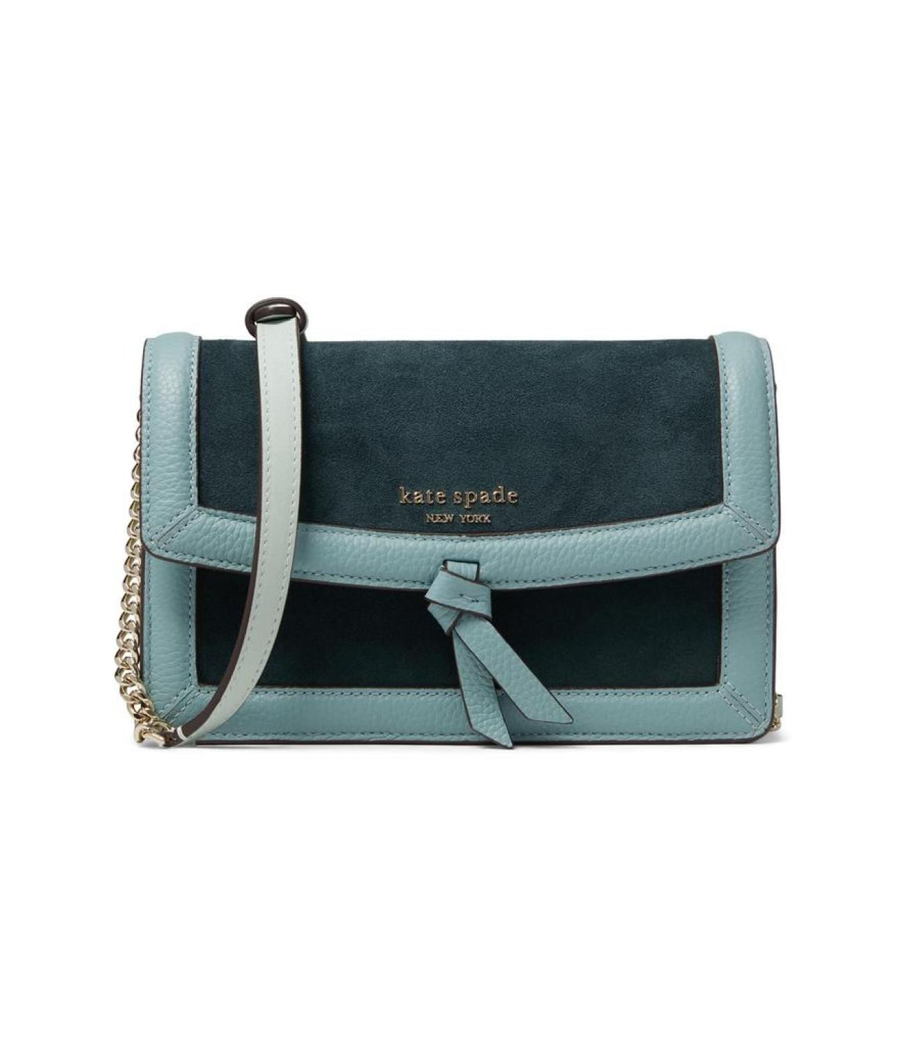 Make your boring and dull attire vibrant carrying the Kate Spade New York® Knott Color-Blocked Pebbled Leather and Suede Leather Flap Crossbody. This handbag features a magnetic snap closure, one zippered interior pocket, and one chain-link detailing adjustable crossbody strap.